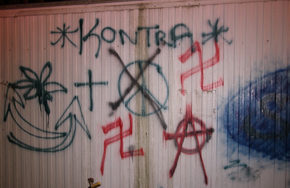 Adding to the mystery, a construction trailer just steps away from the fire was covered with troubling graffiti, including swastikas and satanic symbols…
