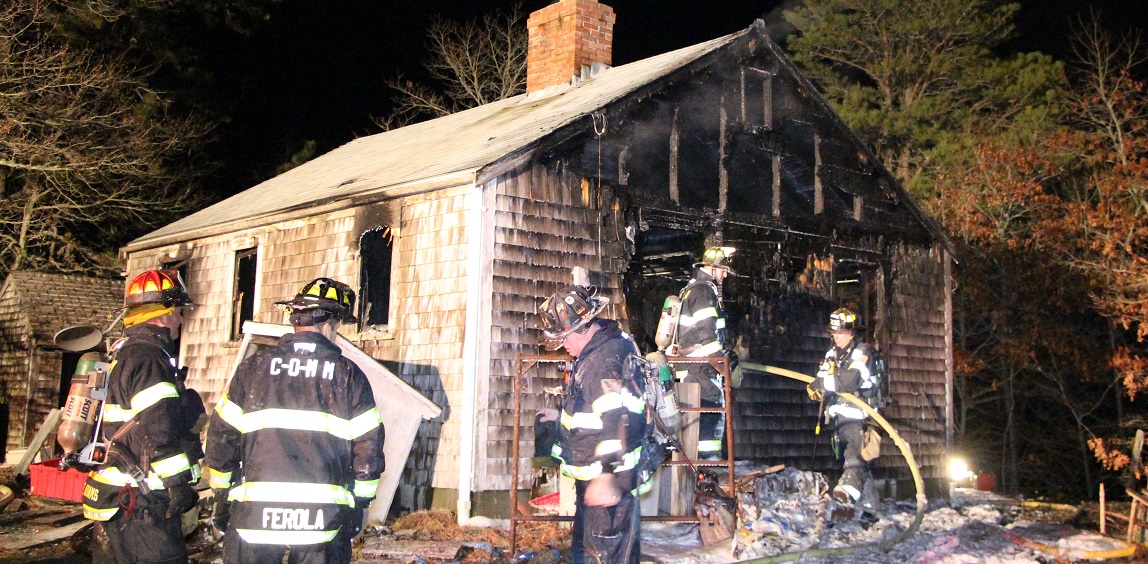 Once hoses were laid out and fully charged, COMM FD, with the assistance of Cotuit FD, quickly battled and knocked down the blaze which had already completely gutted the vacant home.