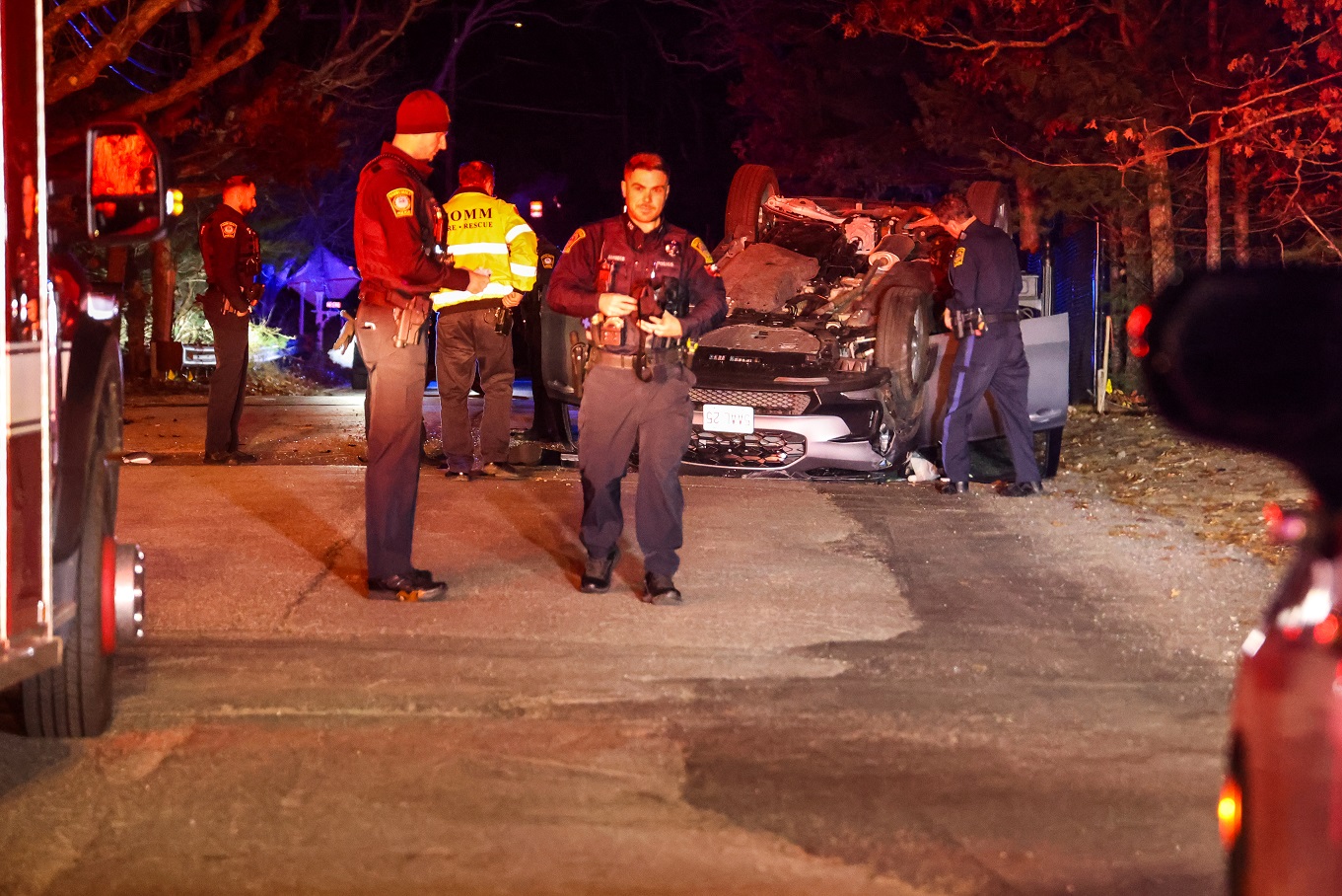 CENTERVILLE, MASSACHUSETTS – [HN photo notes] – A woman heading to work was transported to Cape Cod Hospital (CCH) with non-life-threatening injuries late Wednesday night after her vehicle crashed into parked cars and overturned on Shootflying Hill Road near Knotty … Continue reading →