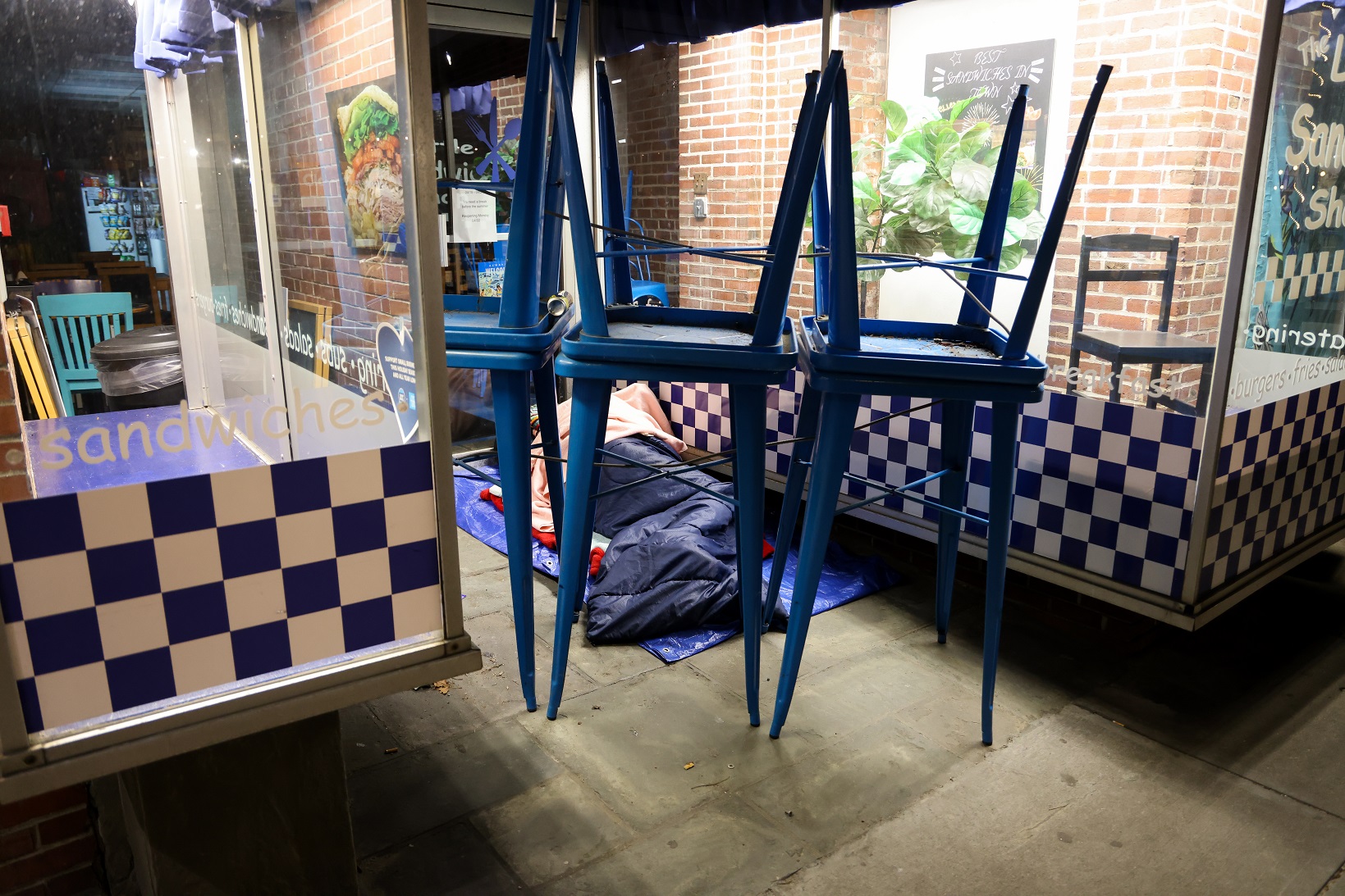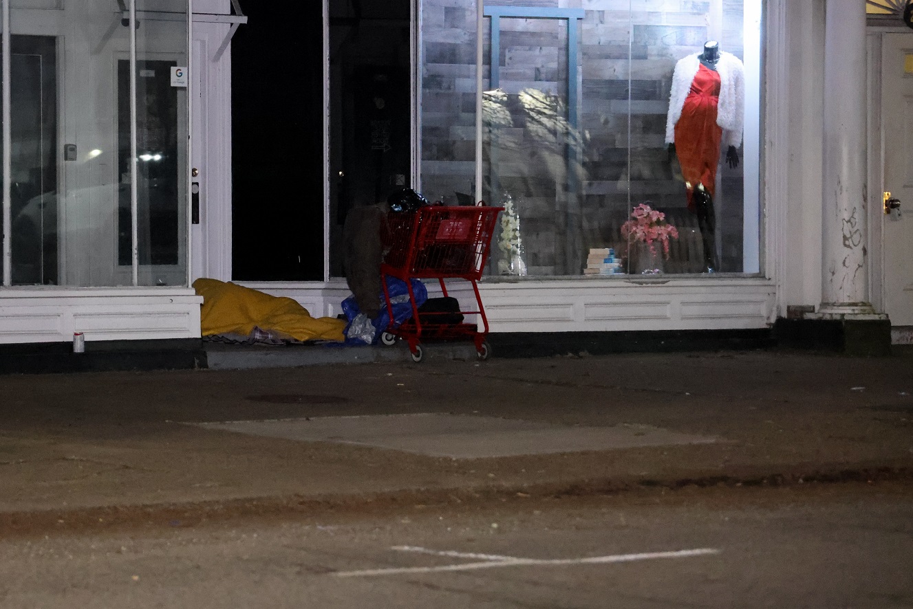 The following are additional HN “after midnight” photos from early this morning. Many of the homeless return to camping in the wooded areas on the outskirts this time of year, but for many others, downtown shop doorways are a relatively “safer” option…