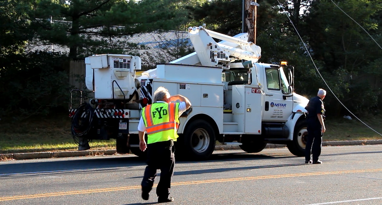 A Massachusetts State Trooper and a Yarmouth Natural Resource Officer assisted by diverting traffic.