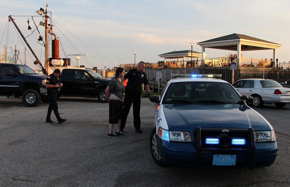 Her freedom bid was dashed by Barnstable Patrolman Blondin waiting on a dock to the rear of the Dockside Restaurant. She was cuffed and escorted to an awaiting Barnstable Police patrol car.