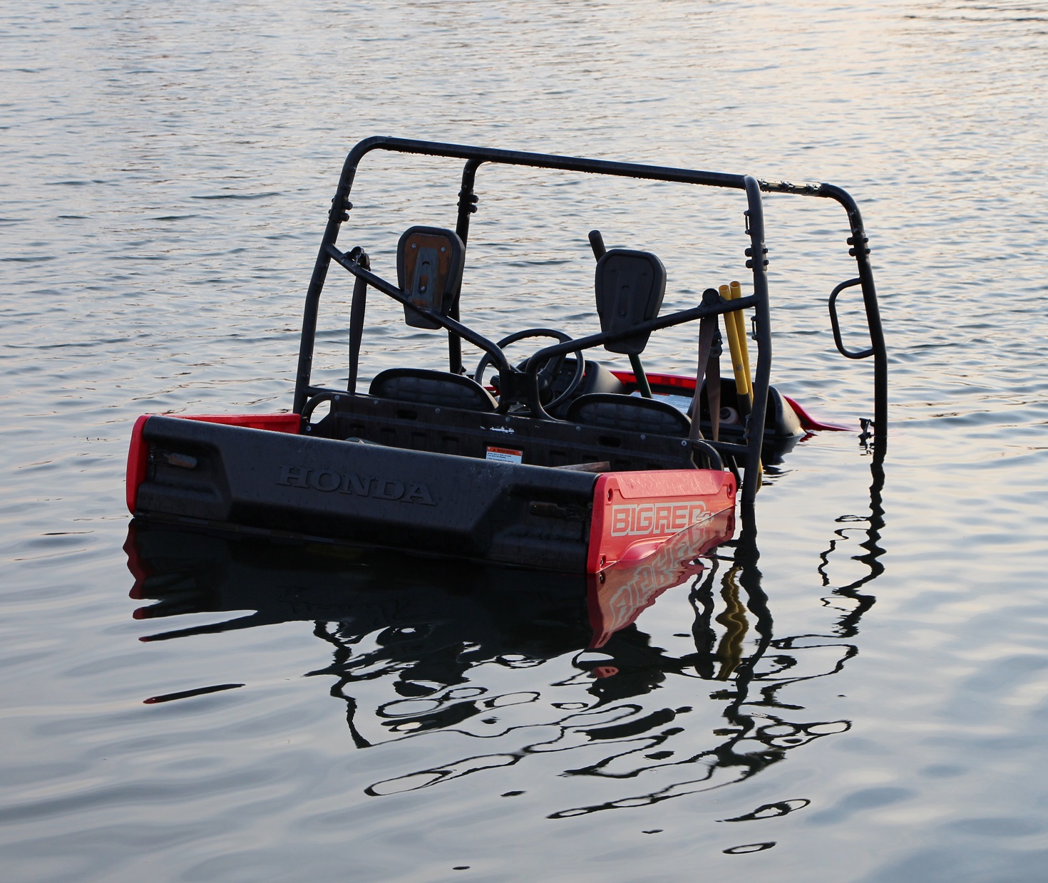 One witness was holding his gut from laughter as he tried to explain the scene, especially the part where the ATV hit the water and the driver went flying over the steering wheel into the drink. A nearby fisherman was reportedly casting and trying to hook the swimmer; witnesses were uncertain as to whether he was trying to help or apprehend her.