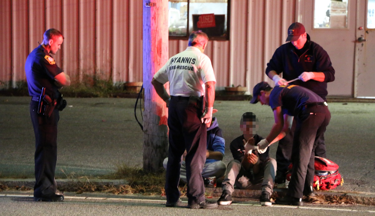 PHOTOS: Hyannis Rescue workers bandaged the wounds of a young male on Bassett Lane early Monday morning. According sources, the two juvenile males flagged down police stating they had been jumped and assaulted by 3 men in an alleyway off Main Street in the West End. The juveniles had just sneaked out from their homes when their parents thought they were still in bed. The boys’ parents came to the scene to pick them up after they were treated by rescue workers for scrapes… Barnstable Police are investigating.