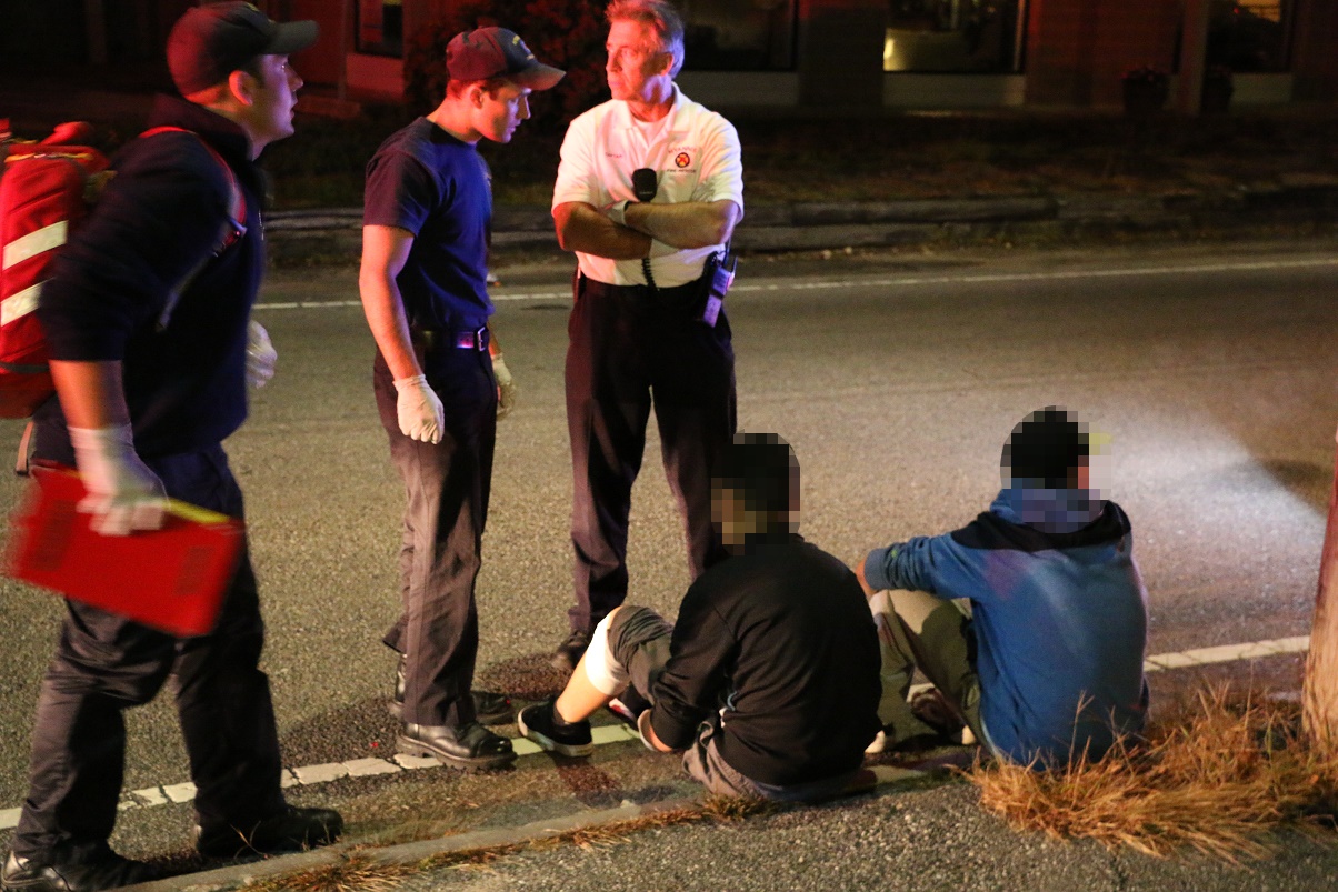 One male was transported to CCH with non-life-threatening injuries; another male and female were checked out and treated on scene for minor cuts and scrapes.