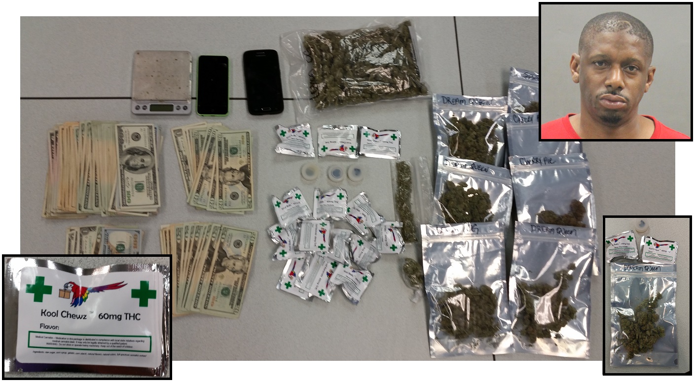 She was found in possession of a backpack which contained marijuana, individually packaged THC cannabis candies, and small containers of hashish. Also found in the backpack was $3520 in US currency. The female said she was a medical marijuana user and produced a valid MASS ID card. Found in the truck of her vehicle was an additional 8.5 ounces of individually packaged marijuana, drug packing material, and digital scale. The female only knew her passenger’s first name as “JAY” and stated he lived in Dorchester, MA. Further investigation reveal BLALOCK is a convicted drug dealer with an extensive criminal history involving the distribution of narcotics. He also had an outstanding warrant for probation violation from the State of Alabama.