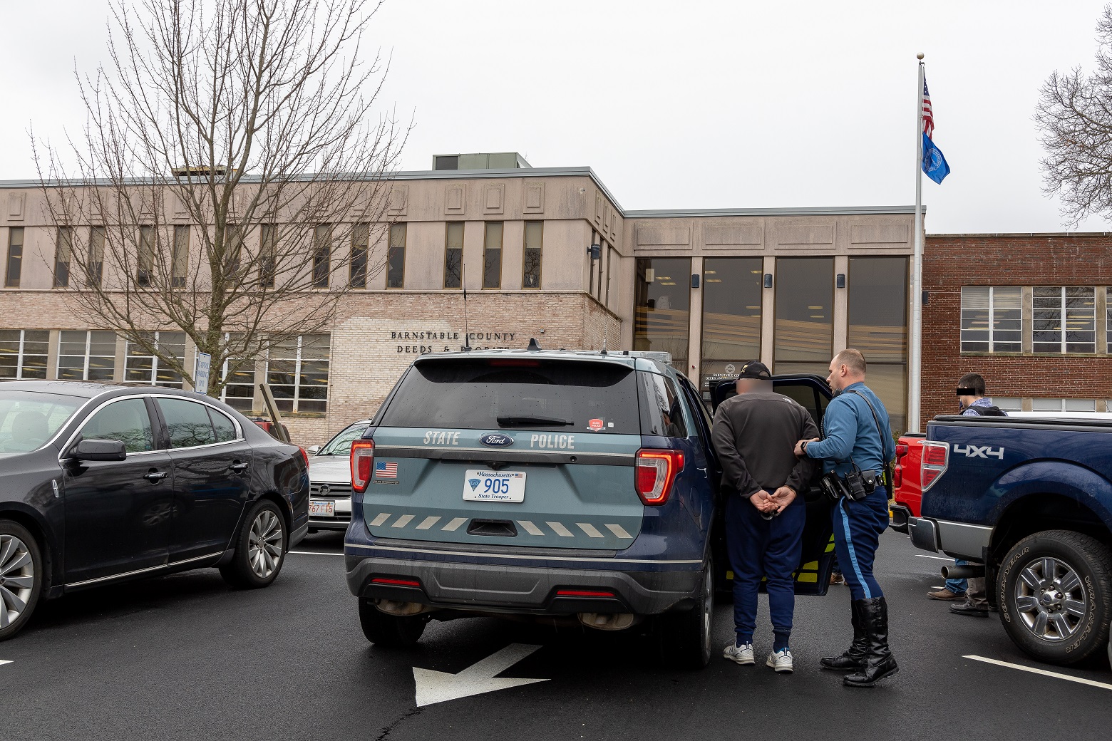 So… at around 10:30 a.m. yesterday morning – February 7th, 2022 – state police detectives armed with body cameras met with Barnstable Police and Court Officers who had intercepted the suspect at the steps to the Barnstable Probate Court.