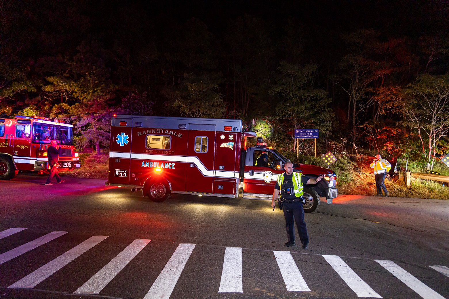 Barnstable FD Rescue called for a Medflight helicopter and began transporting the patient via ambulance to an off-Cape trauma center. It is believed they were met by Medflight at a landing zone along the way. (HN will provide official updates as they become available.)