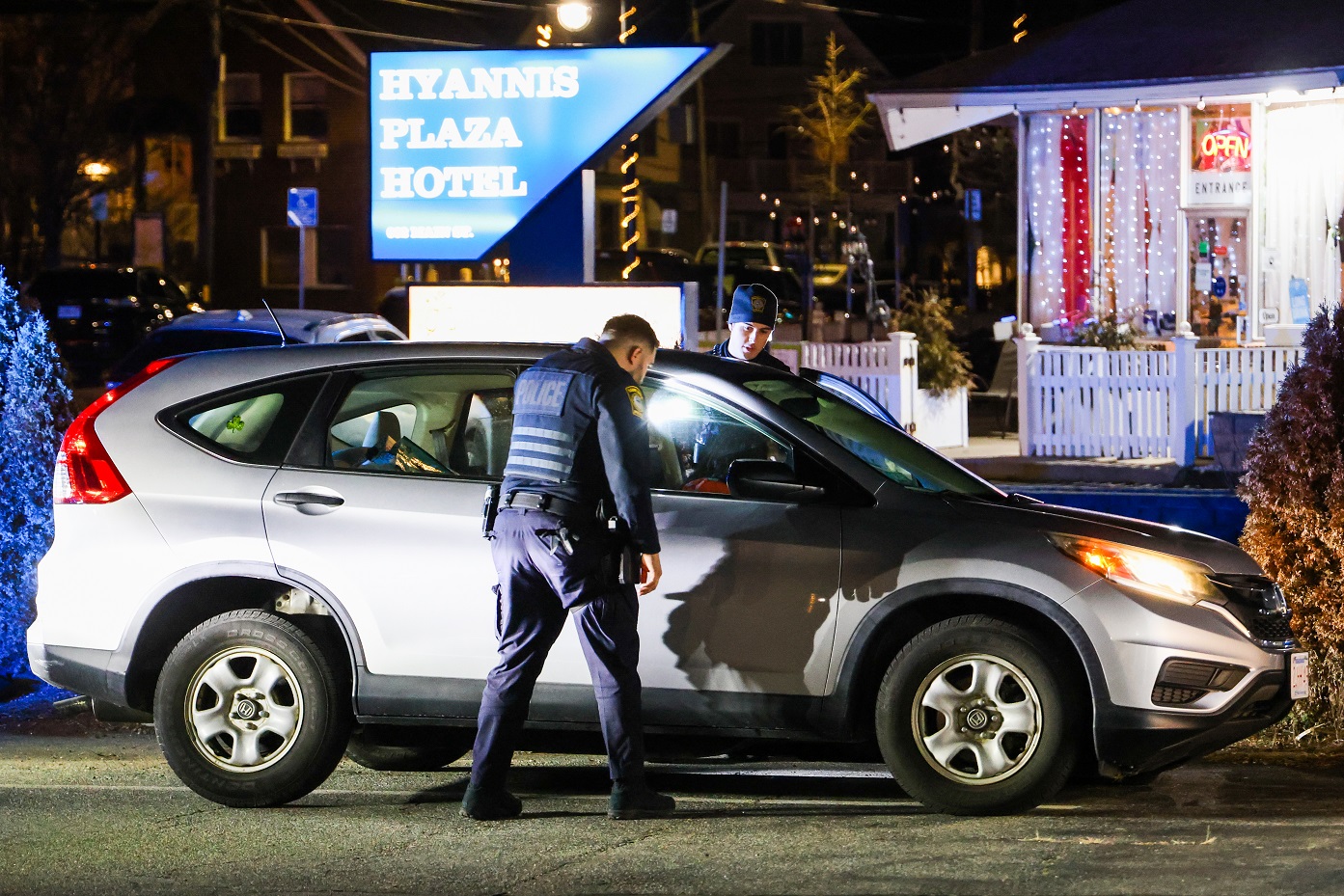 HYANNIS – Barnstable police patrol officers and detectives are investigating after an unmarked police vehicle was peppered with BBs last evening, at around [11:00p.m.] One of the vehicle’s windows appeared shattered. The police vehicle had been patrolling [the downtown Hyannis area when it was allegedly boxed in and hit]. A number of police units responded. Evidence was photographed. At least two adult males where detained and taken in for questioning. [SEE BPD UPDATE & MUGSHOTS BELOW]