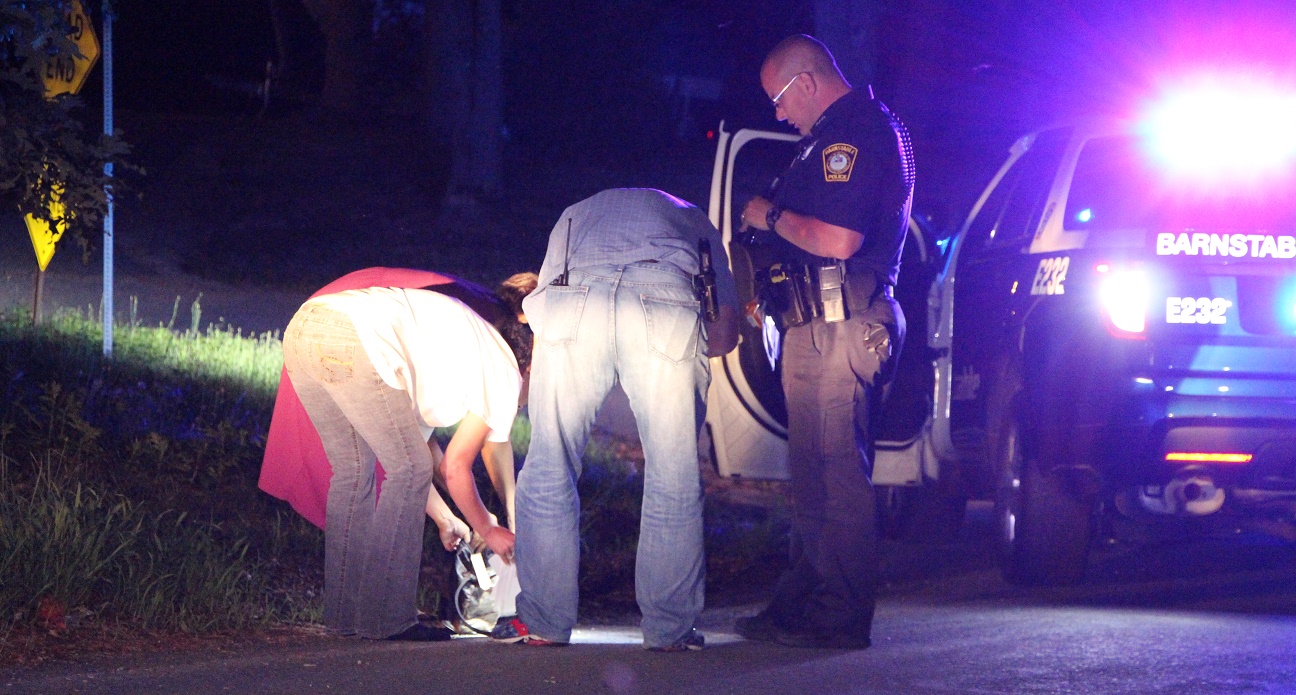 Barnstable Patrolman Dennis Stampfl took a report and began to comb the area for clues. Just several blocks away Stampfl located the purse in the middle of the road.
