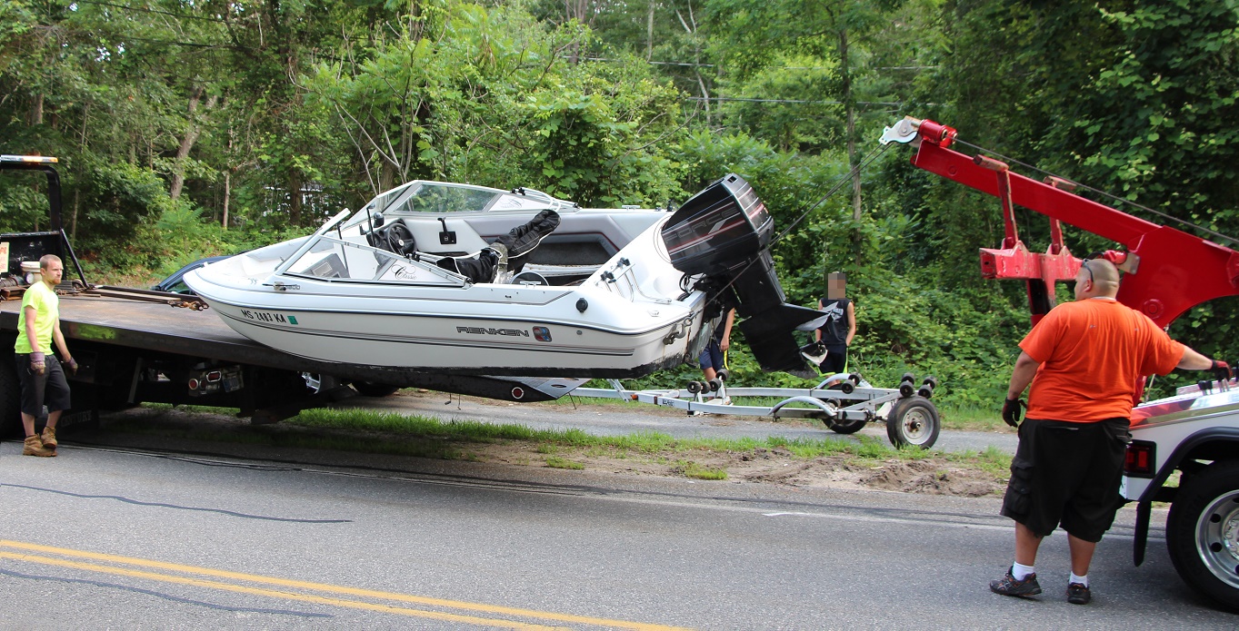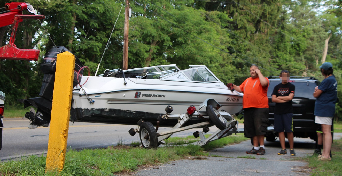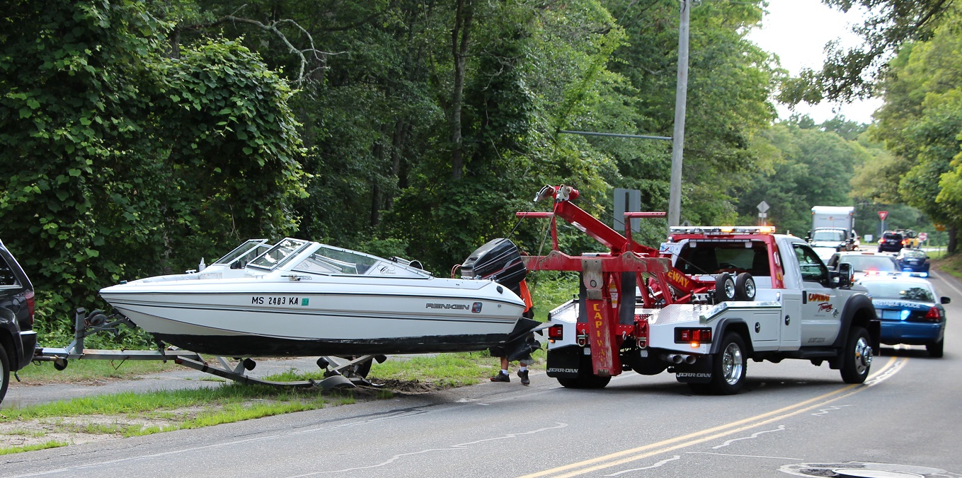 WEST BARNSTABLE – Police closed down a travel lane on the service road this afternoon after a boat trailer fell apart and dropped a motorboat on the pavement.