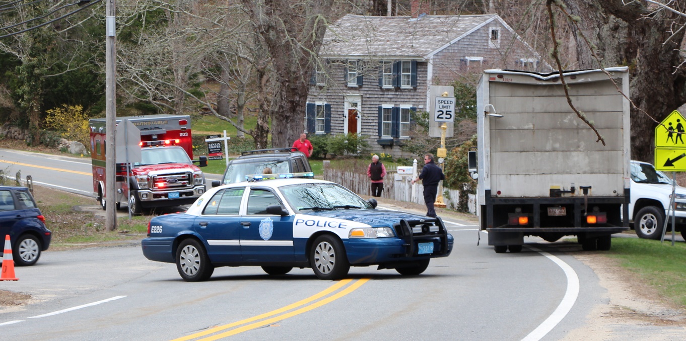 At about 12:45pm, police and the Barnstable Fire Department responded Route 6A right in front of the elementary school after a box truck struck a telephone support pole.