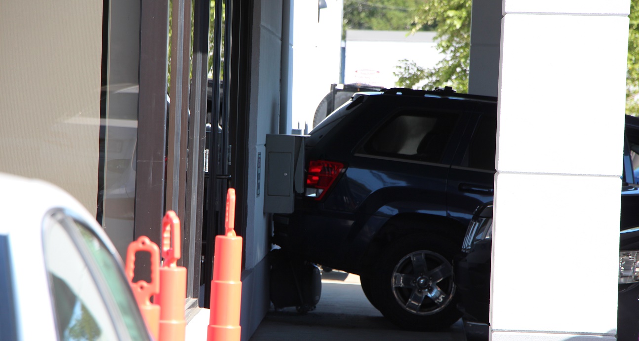 HYANNIS – At about 2:45pm, a customer at Premier Cape Cod, a Chrysler, Dodge, and Jeep dealership, backed into the building and severed a major gas main.