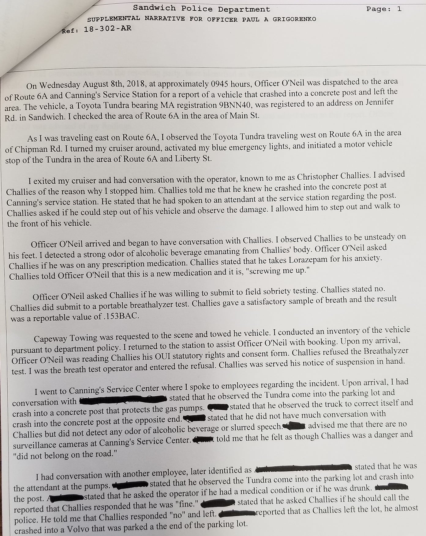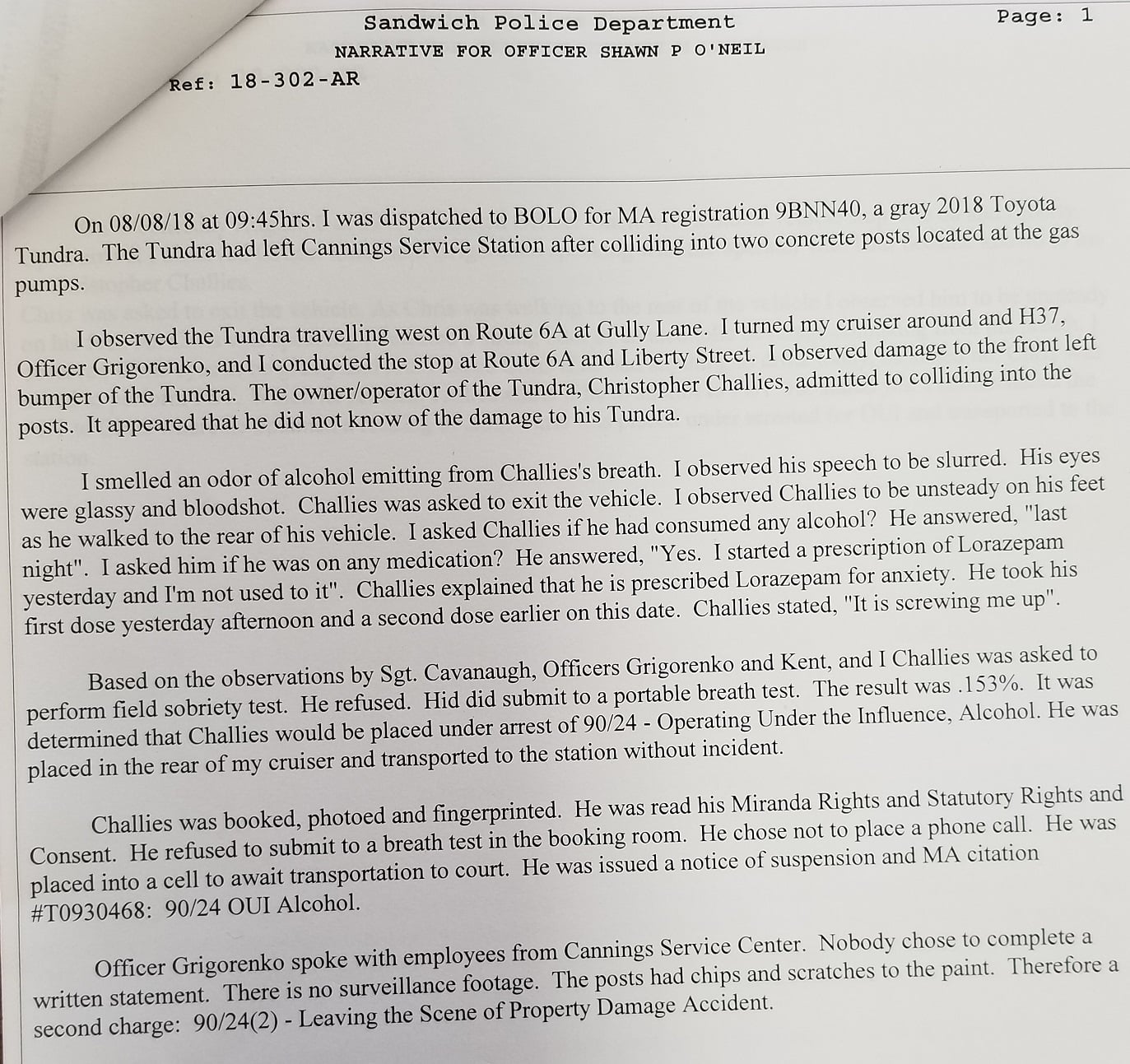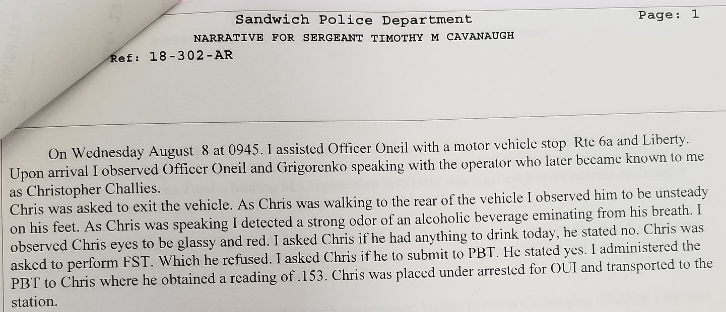 Challies has no longer been listed as a Barnstable Police Sergeant since his last OUI arrest in 2017.