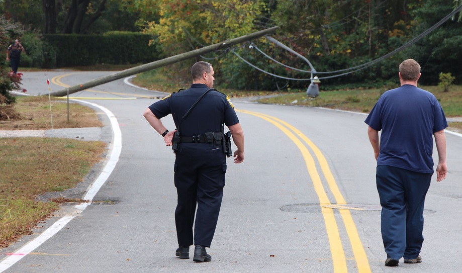 The driver told Hyannis News he was surprised to see a telephone pole suddenly fall across the street very near to where he was backing up.