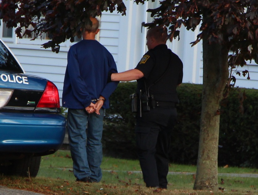 Officer Troy Perry radioed that their was probable cause for arrest on felony charges; the suspect was quickly secured in handcuffs.