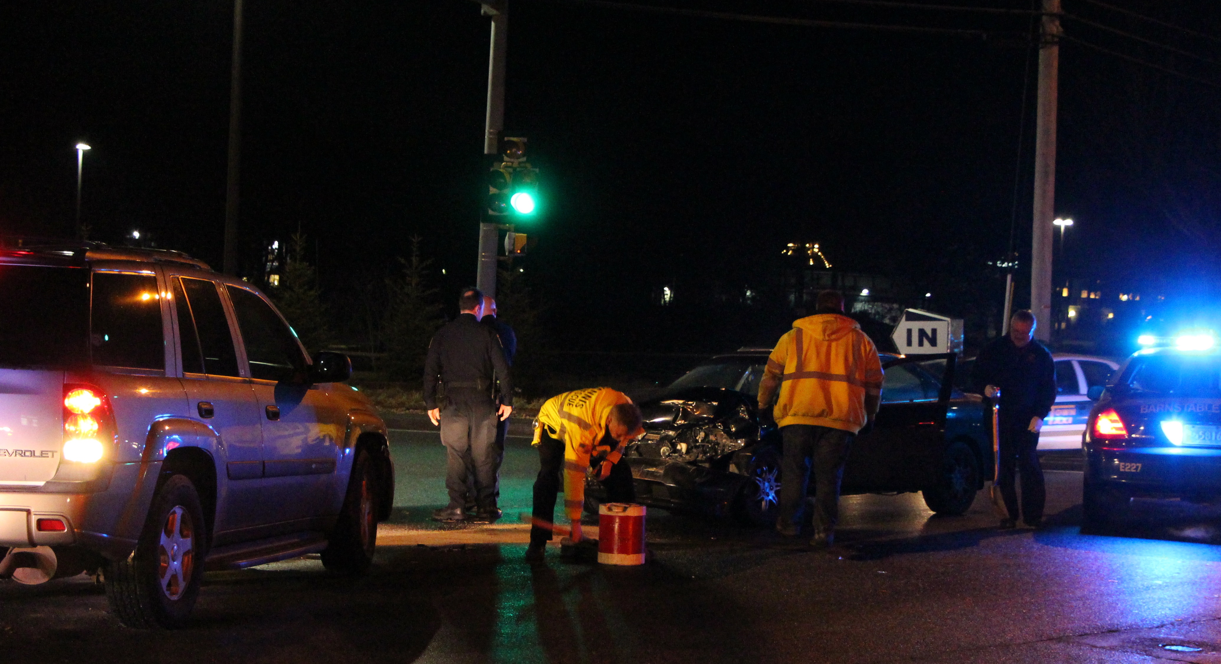 Last night several patrol cars responded to a motor vehicle accident near the rear entrance to the Cape Cod Mall...