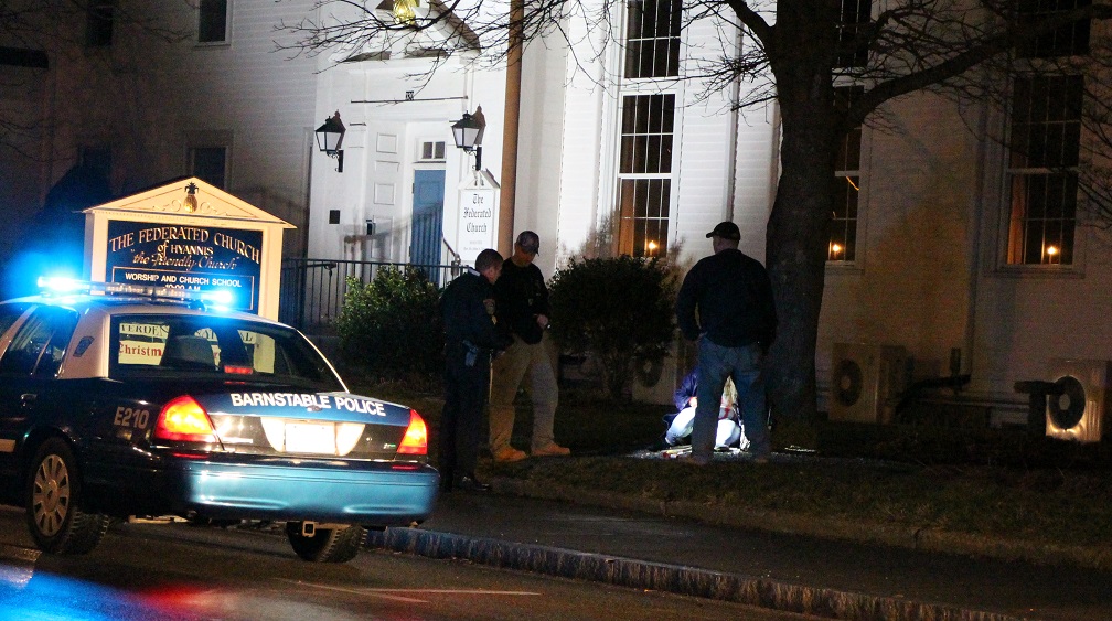 Last night officers helped a woman who was reportedly found lying in front of the Federated Church... Hyannis Rescue was summoned to assist...