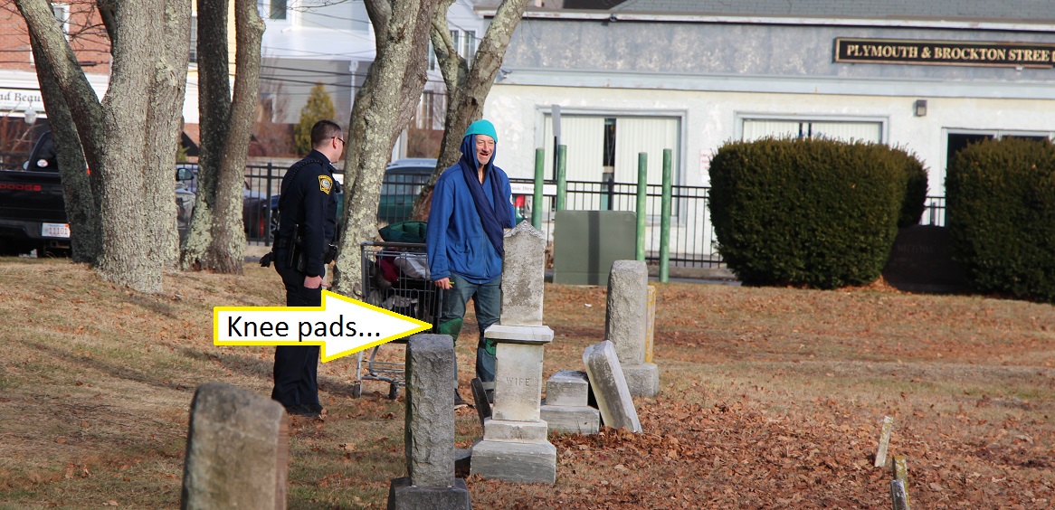 Upon speaking with the reporting party and the suspect, police were satisfied (for the time being) that the homeless man was possibly trying to “fix” one of the headstones.