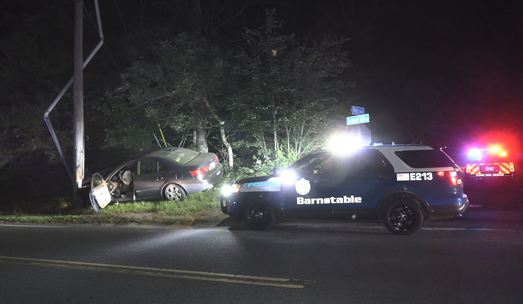 Police and firefighters responded to the intersection Lumbert Mill and Nye Road late last evening after receiving a report of a single vehicle crash into a utility pole.
