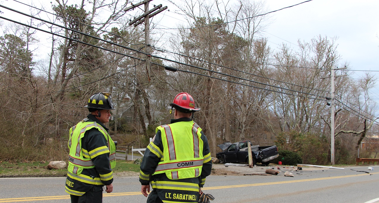 UPDATE 8:20pm — According to Barnstable Police sources, Mark Hinckley, age 28, of Centerville is being charged with OUI Liquor, Operating to Endanger, and marked lane violations. Eversource Energy and police are still on scene repairing the pole at the time of this report… South Main Street from the intersection at Four Seas Ice Cream all the way to Bay Lane in Centerville is expected to be closed to through traffic until about 3:00am…