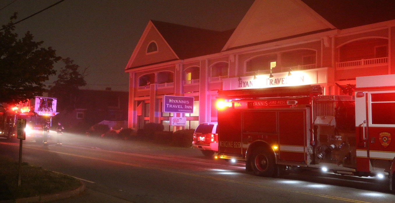Hyannis firefighters responded to the Hyannis Travel Inn this morning at about 2:00AM for a fire in the electrical room. The fire was extinguished upon their arrival. Guests had to briefly evacuate… and firefighters had to remain on scene for a while to ensure the fire didn’t extend further…