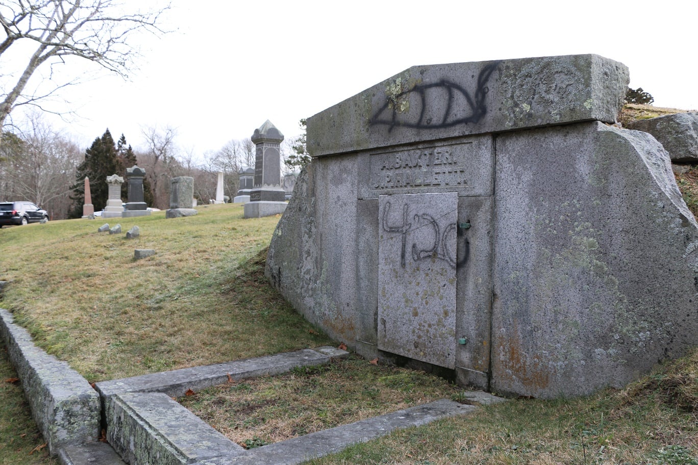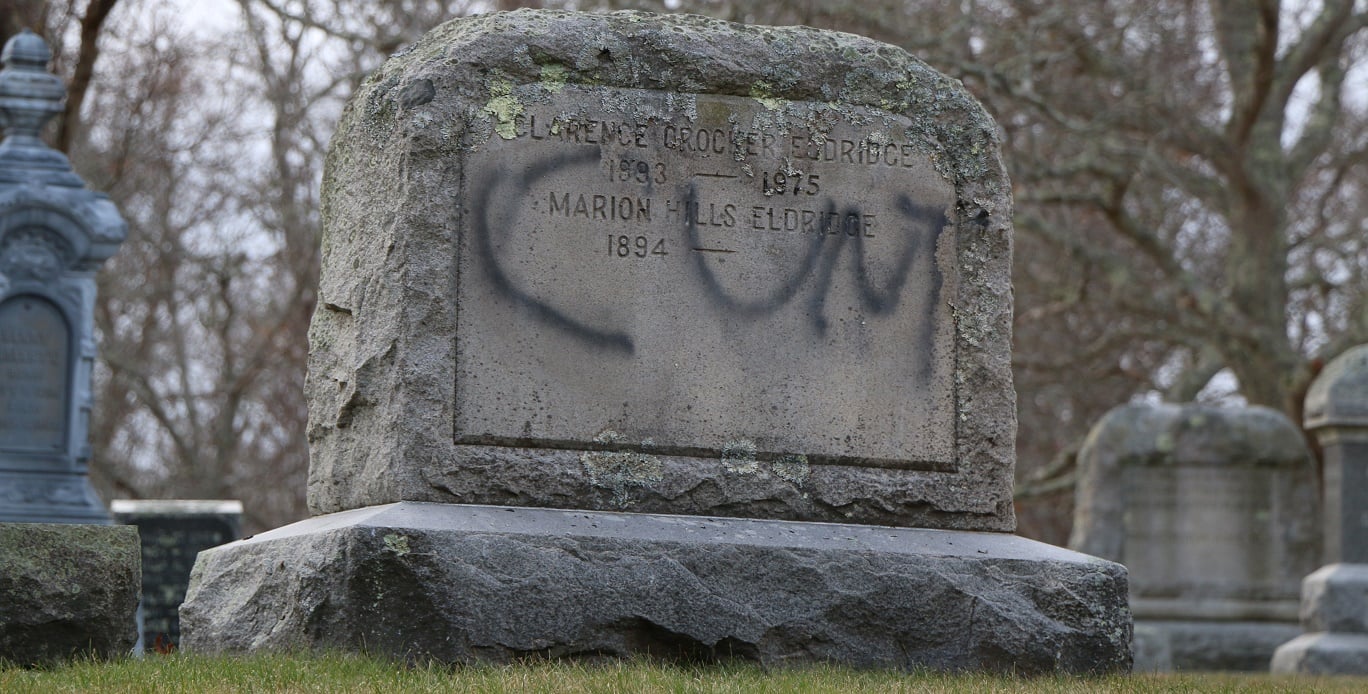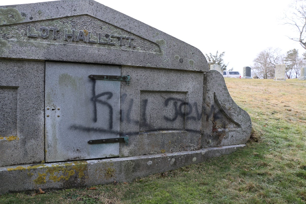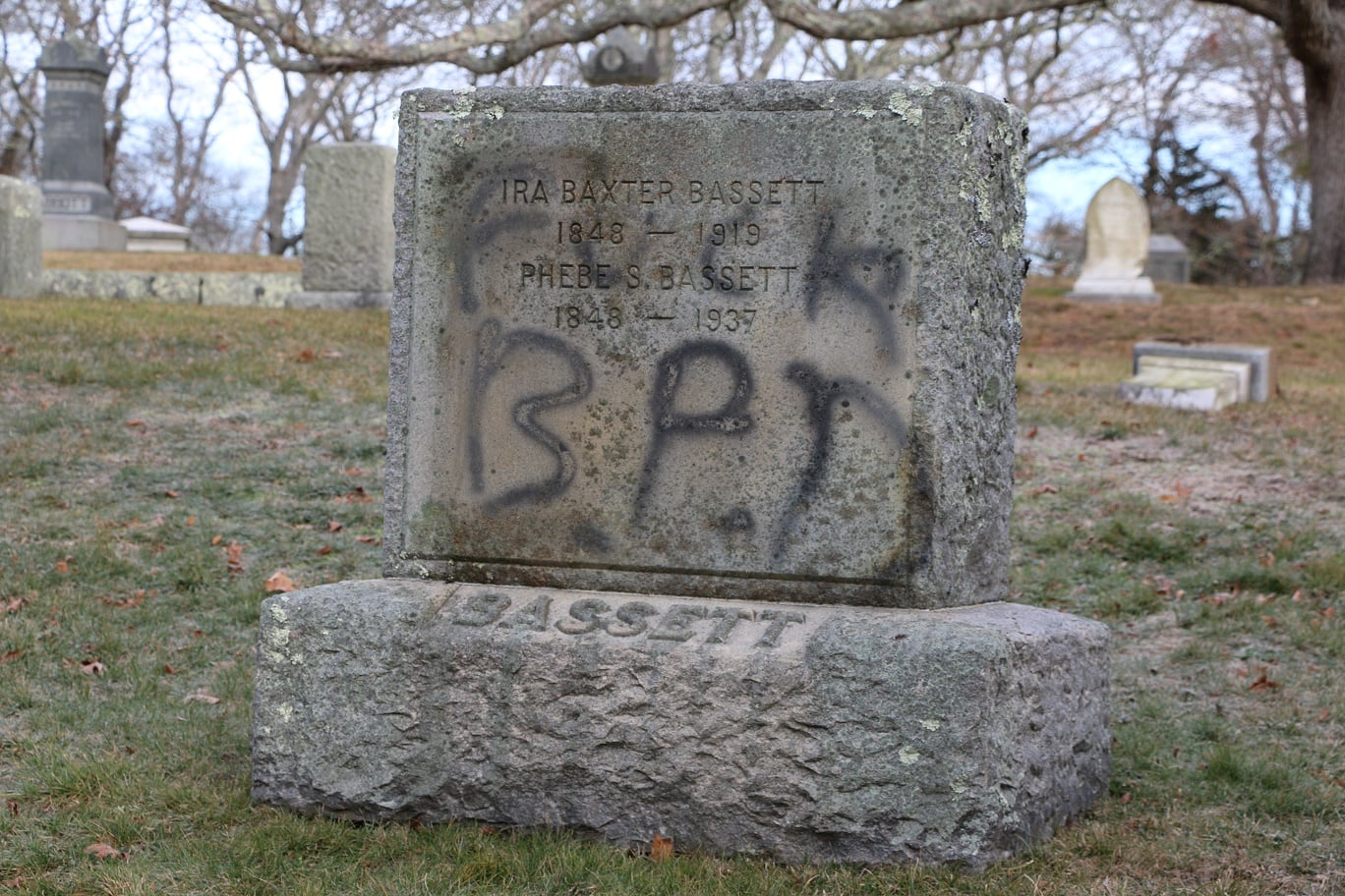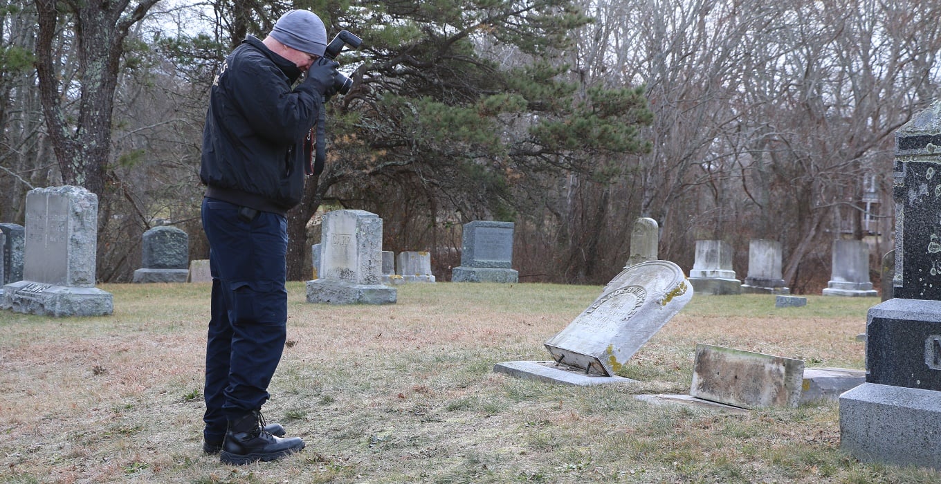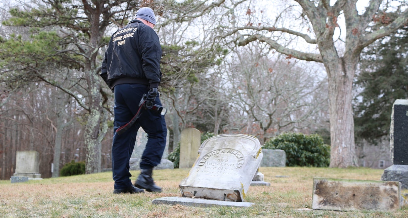 The Barnstable Police and the Barnstable County Sheriff’s Crime Scene Unit were at the Oak Grove Cemetery on Sea Street this morning investigating an ongoing hate crime with very serious tombstone vandalism.