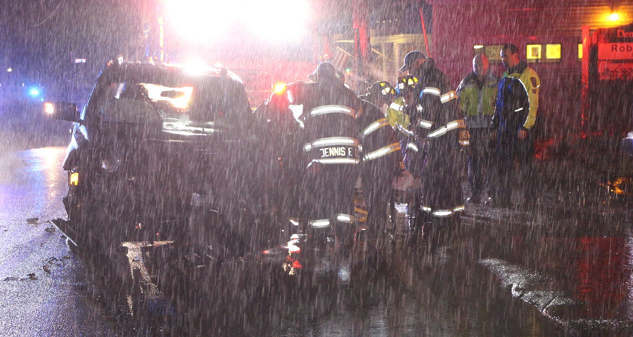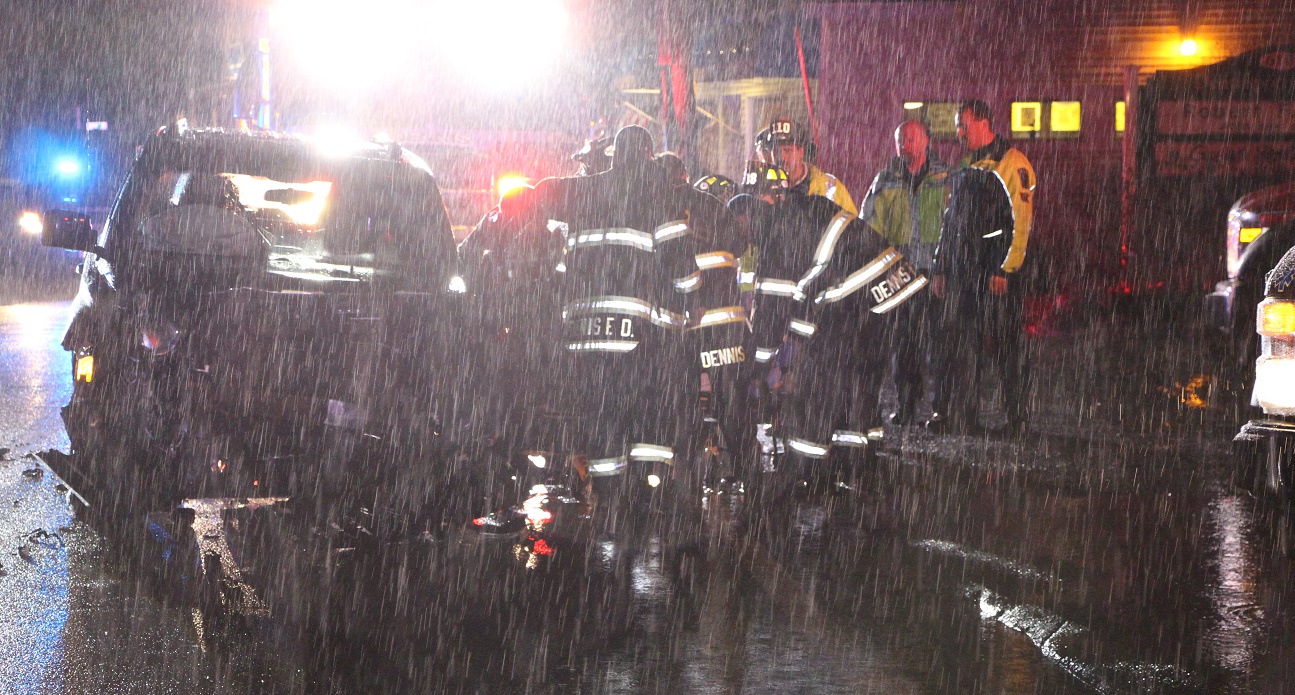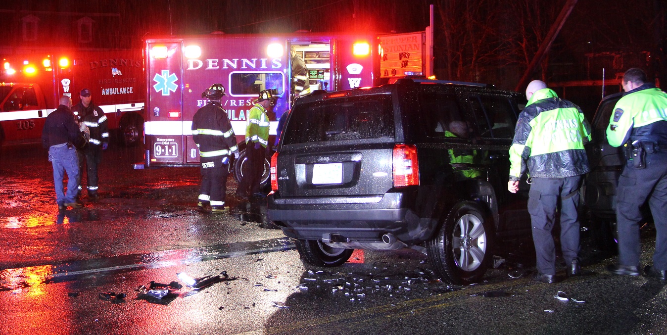 DENNIS PORT – At 5:05pm, a Dennis Patrolman called in a head-on collision on Route 28 in front of The Improper Bostonian bar.