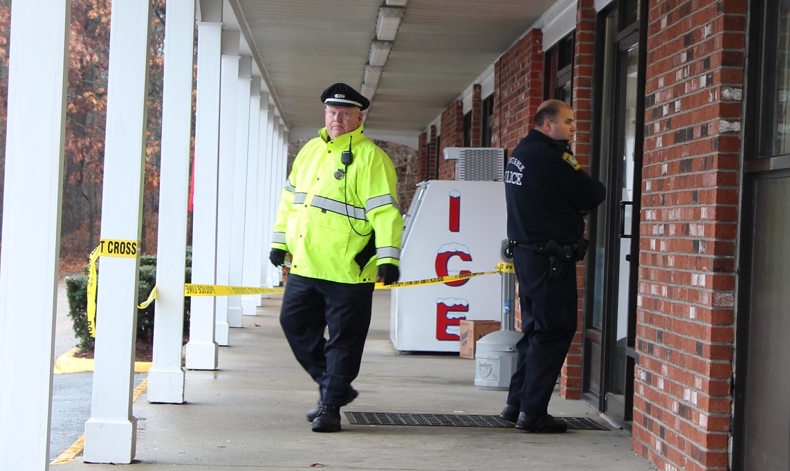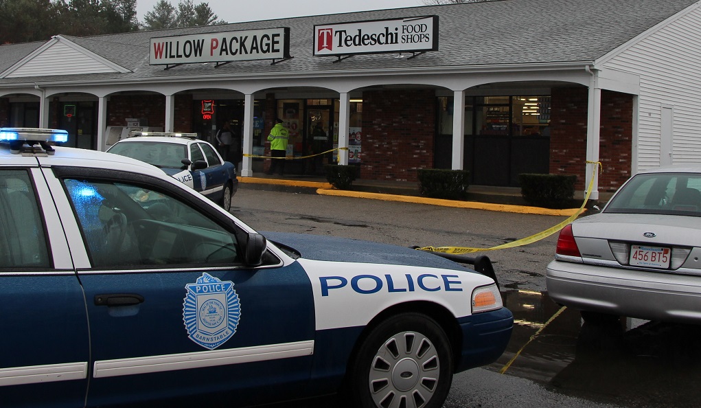 Barnstable Patrolmen quickly secure the scene of the crime at the Tedeschi Food Shop at 696 Yarmouth Road in Hyannis, right on the Yarmouth / Barnstable town line…
