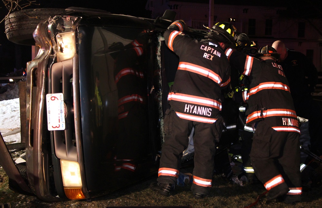 Hyannis – Just after 6pm, Hyannis Rescue and Barnstable Police rushed to a serious rollover/ two-car accident at the intersection of South Street and High School Road.