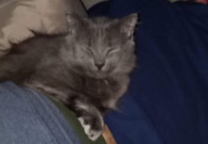 From the kitten’s family: “Any help finding our kitten would be appreciated. He is a one year old gray long haired boy named Nugget. He is very affectionate but I’m sure is skittish since he’s never been outside before.”