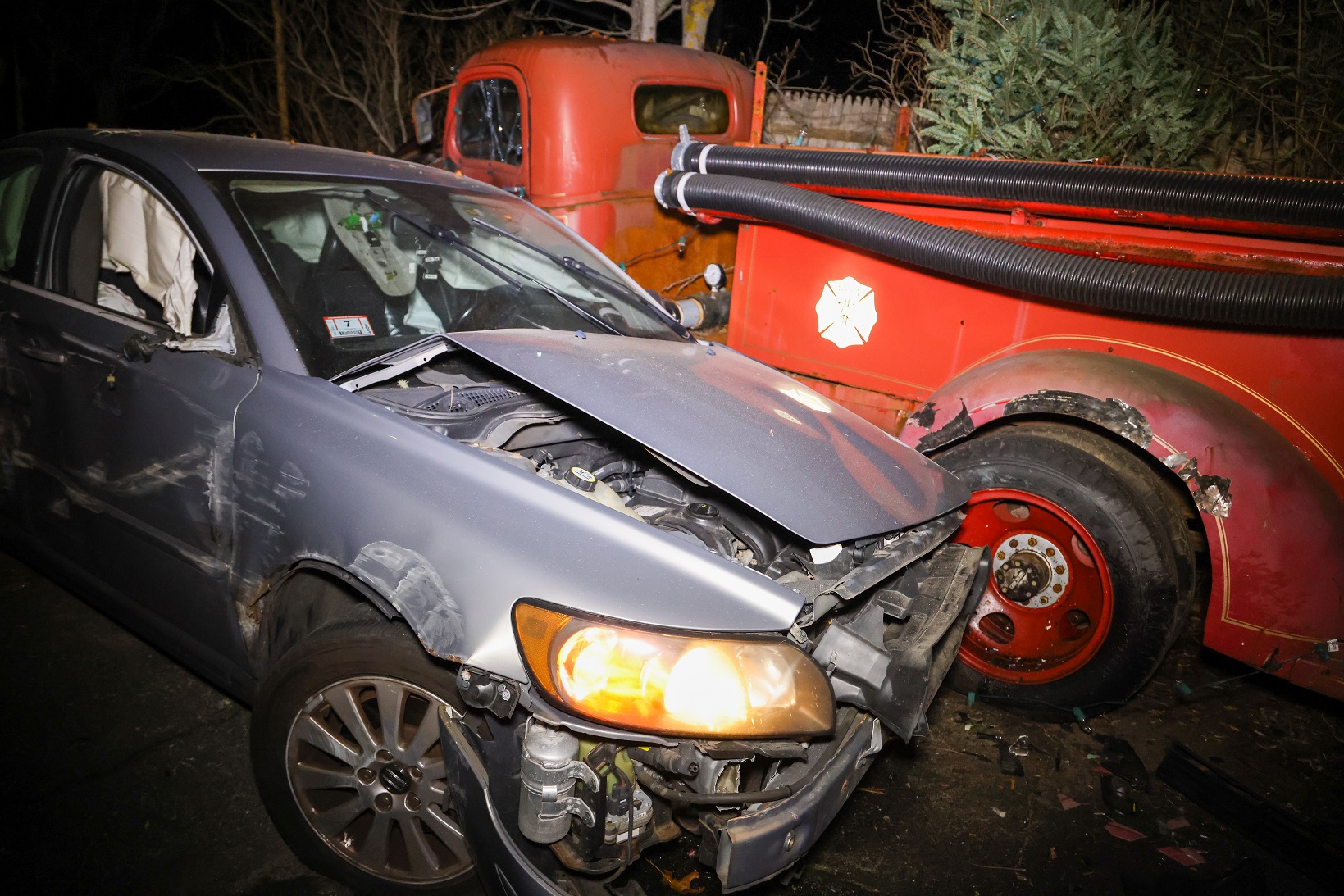 DRIVER FLED AFTER CRASHING INTO ANTIQUE FIRE TRUCK, OLD CHEVY, & OLD GARAGE [NEW DETAILS]