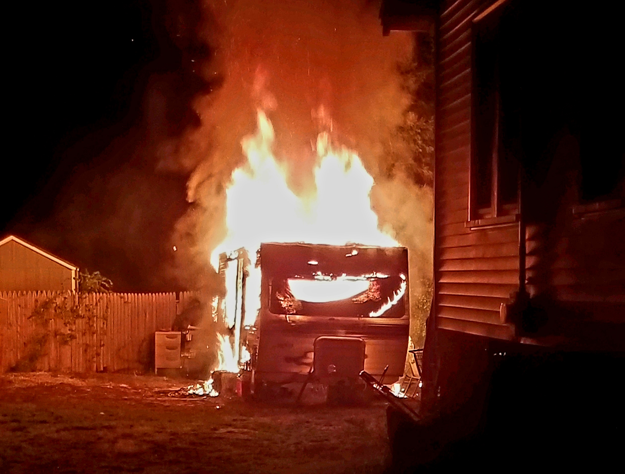 FIREFIGHTERS BATTLE CAMPER BLAZE, SAVE HOME DURING WEE HOURS