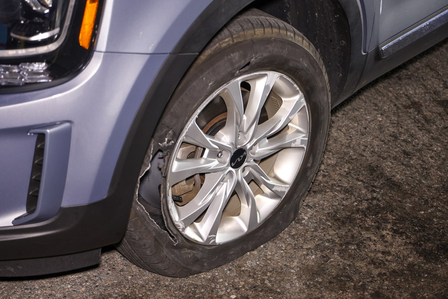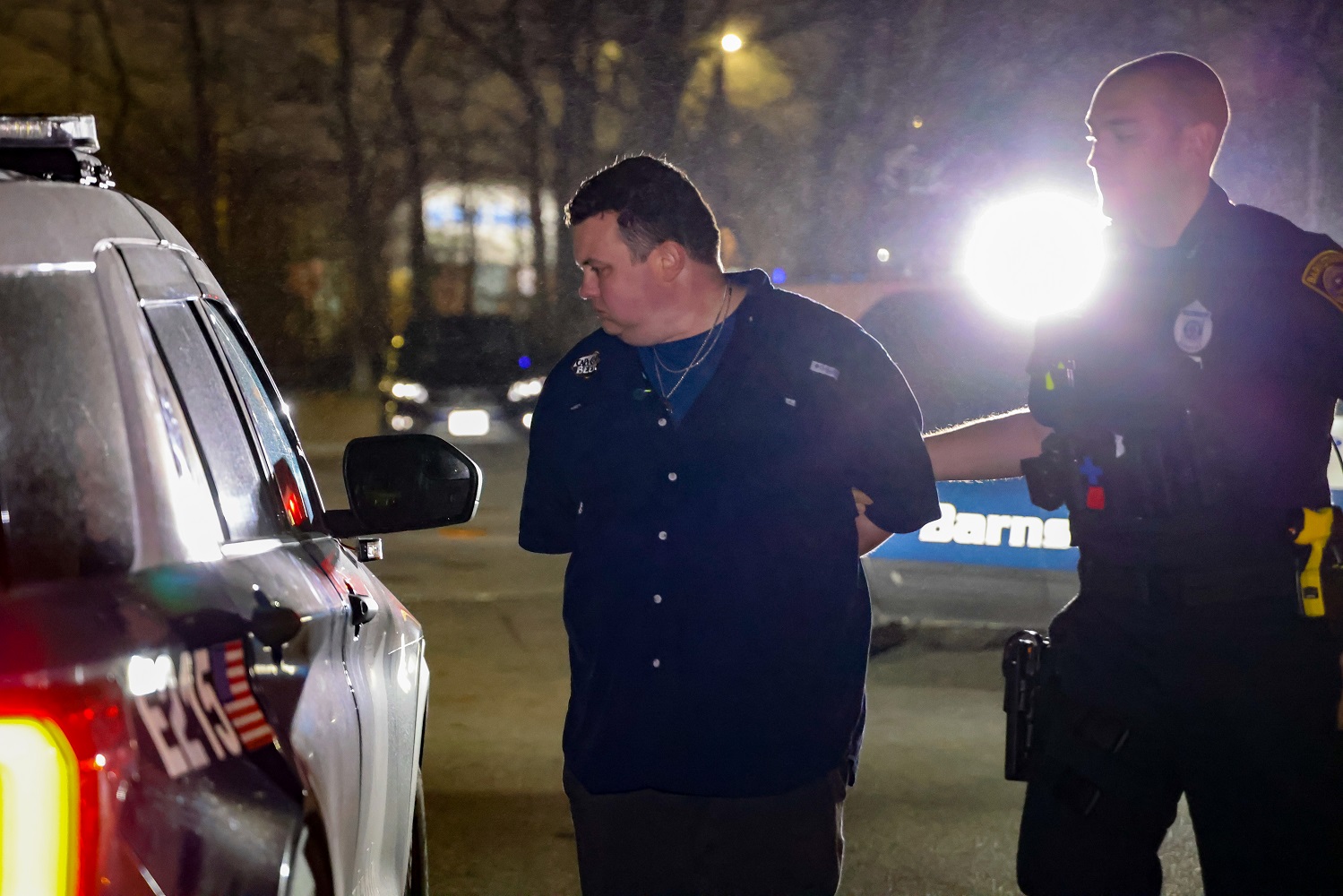 HYANNIS – [HN PHOTOS] – Barnstable Police officers responded to a local gas station after receiving a report of an intoxicated male in a vehicle, at around 3:00 a.m. this morning. The first officers on scene observed an adult male as being the sole occupant of the vehicle. Officers also observed that the vehicle’s front, driver’s side tire had gaping holes in its sidewall. The man was given field sobriety tests (see above HN photos) and was subsequently arrested on suspicion of Operating Under the Influence.
