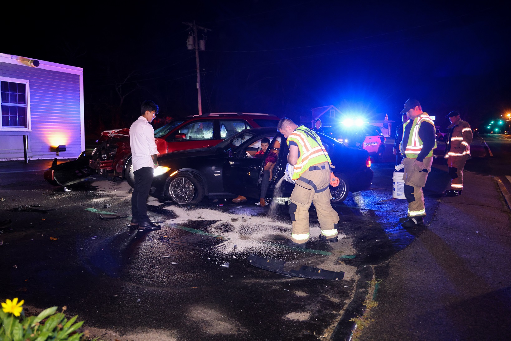 YARMOUTH/HYANNIS – Both “single vehicle” BMW crashes were reported within minutes of each other, at around 1:40 a.m, and about 3.5 miles from each other. One of the BMWs slammed into a vehicle parked in front of the Sons of Erin Irish-American Club in West Yarmouth. Both adult male occupants were uninjured despite the violent impact with the stationary SUV. It’s uncertain what caused the BMW to leave the roadway and strike the parked vehicle. According to police sources, there were no signs of the driver being under the influence of anything. The Yarmouth Police investigation is ongoing, and the driver may receive a summons in the mail for possible motor vehicle charges, according to a source. Both vehicles needed to be towed from the scene.