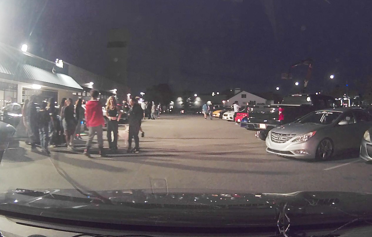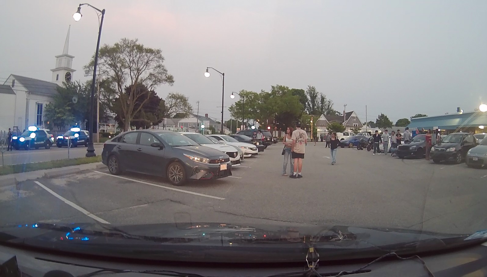Above HN dashcam screengrabs: The parking lot at the corner of 500 Main Street and High School Road attracted a large number of car enthusiasts last evening. These downtown “car meets” happen at least once a week (usually on Wednesday evenings), attracting individuals from across the entire state. Most of these car enthusiasts arrive and leave from the parking lot driving in a sensible manner… while some drive irresponsibly, endangering themselves and the general public with idiotic displays of reckless driving in the heavily congested Main Street area. Dozens of these car enthusiasts were pulled over during traffic stops last evening, either by the State Police CAT unit or by Barnstable Police patrol officers. These stops led to citations, vehicles being towed, and at least one warrant arrest over the past two evenings.