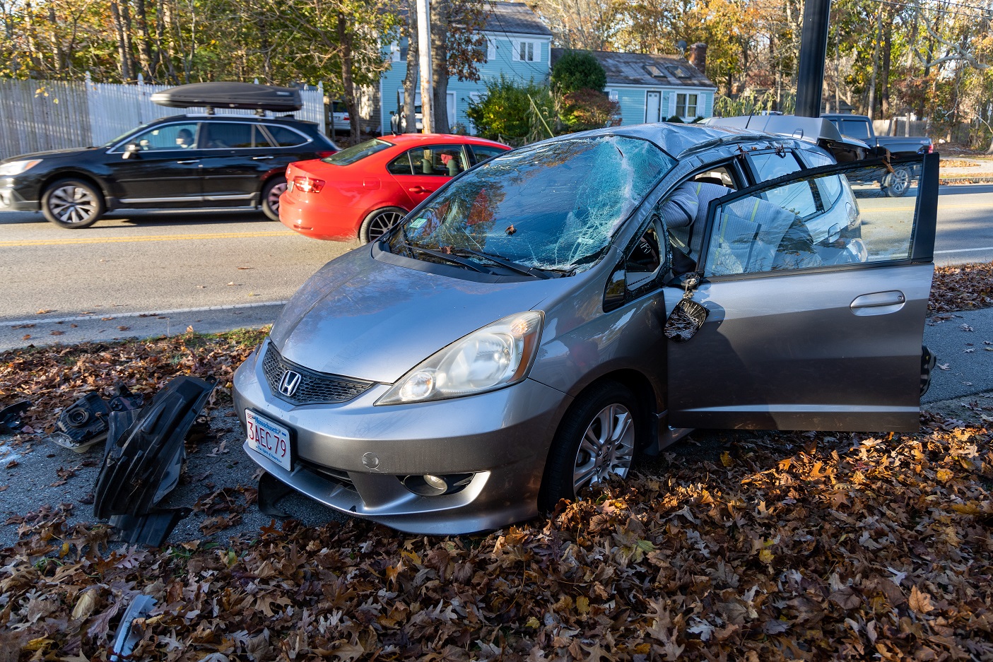 HYANNIS – The driver of a Honda Fit hatchback escaped with just barely a scratch to her hand after her vehicle crashed and rolled over on Bearses Way this morning. The vehicle somehow rolled over and landed back on all four wheels.