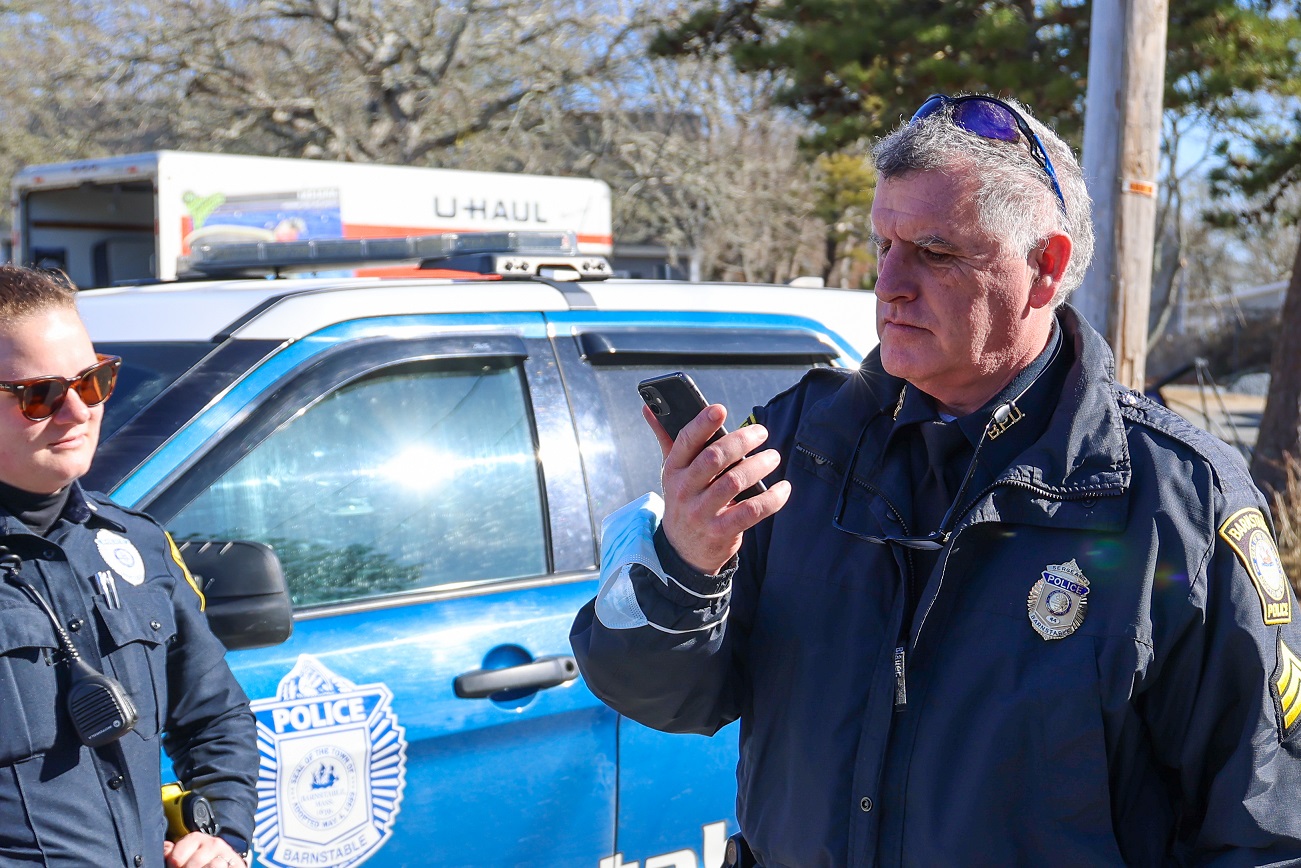 Top HN photo: Tensions still managed to fester upon the sun-drenched Hyannis sidewalks despite today’s agreeable weather. In the above HN photo, Barnstable Police Patrolwoman Danielle St. Peter takes a report of a possible assault in the area of North Street. It was initially alleged a knife had been mentioned. Squad cars immediately saturated the area looking to a have a word with a possible suspect. No arrests were made. The BPD is investigating the incident.