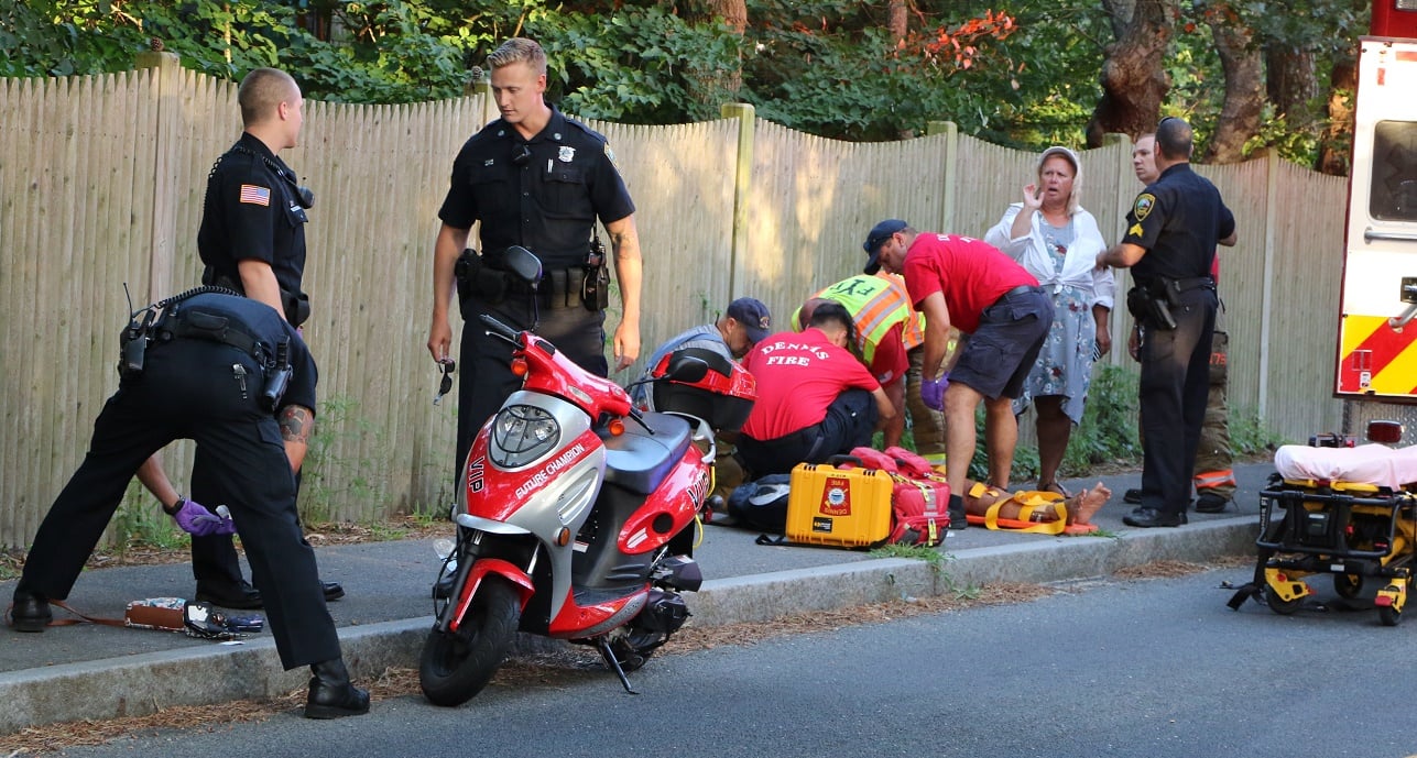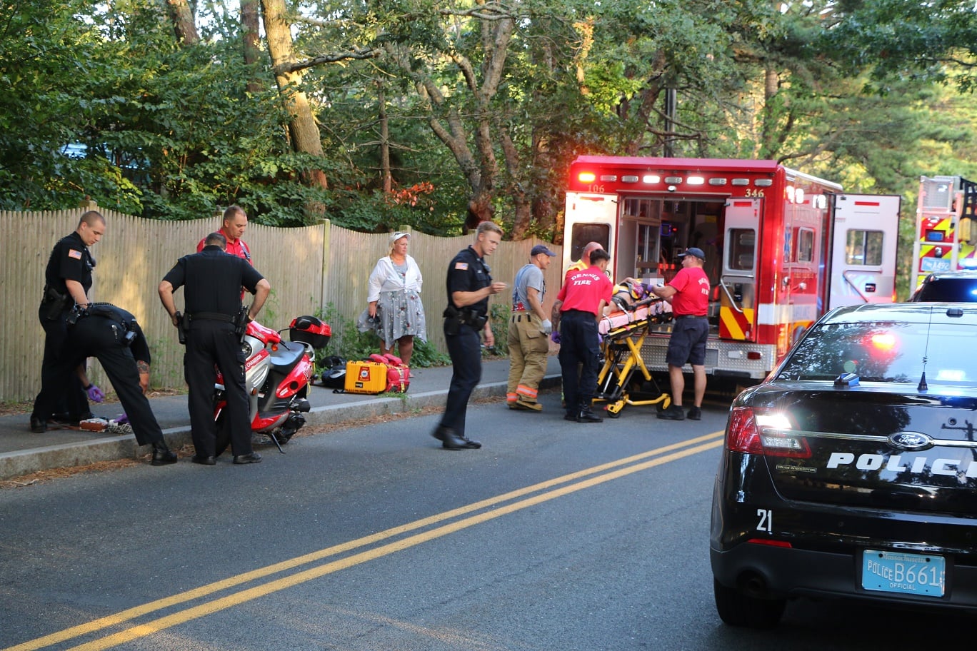 SOUTH YARMOUTH – At about 7:15 PM, police and rescue reponded to South Street after a woman was found unconscious on the pavement after apparently crashing a motor scooter.