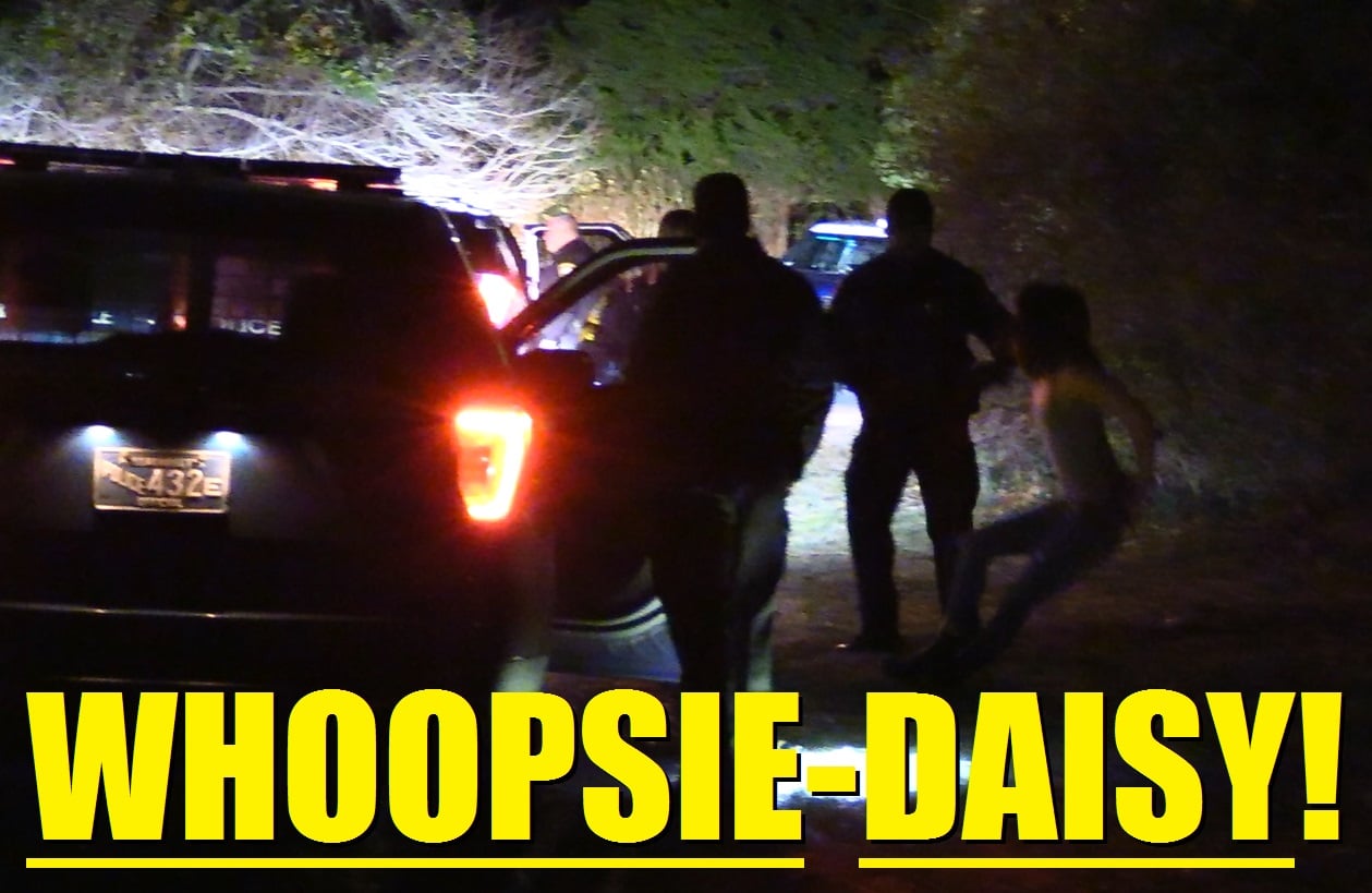 At least five patrol cars arrived and separated both women in separate cruisers. As you’ll see in the video, one young lady was so drunk she had trouble standing up.