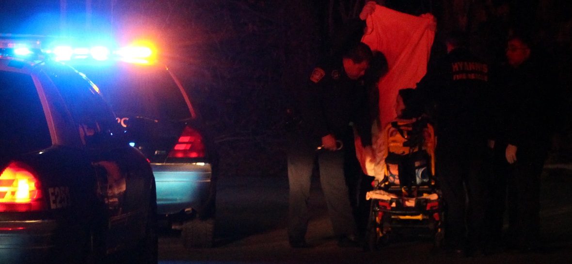 Hyannis Rescue responded and strapped the female onto a stretcher. A police officer also handcuffed the female to the stretcher… She was then transported to Cape Cod Hospital with police closely following…