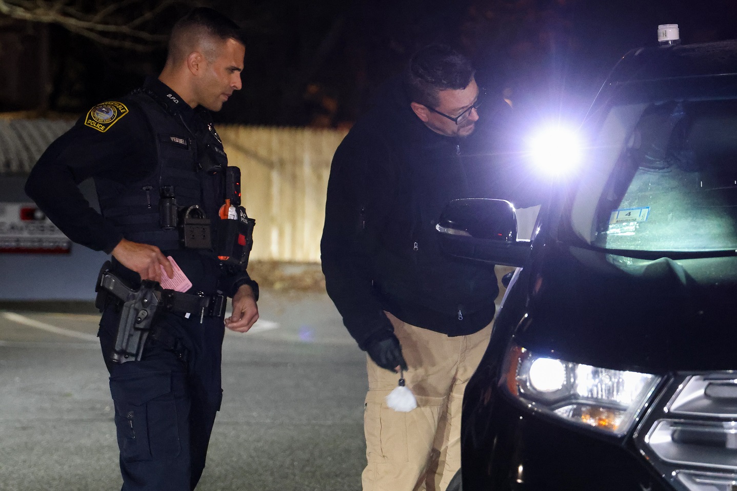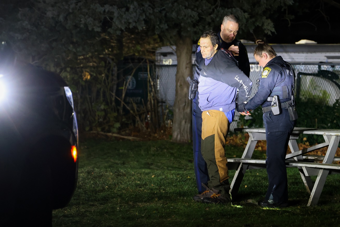 Above: Barnstable Police Sergeant Matthew Blondin and Patrolwoman Braila Roy escort a B&E suspect to a nearby cruiser Wednesday evening.