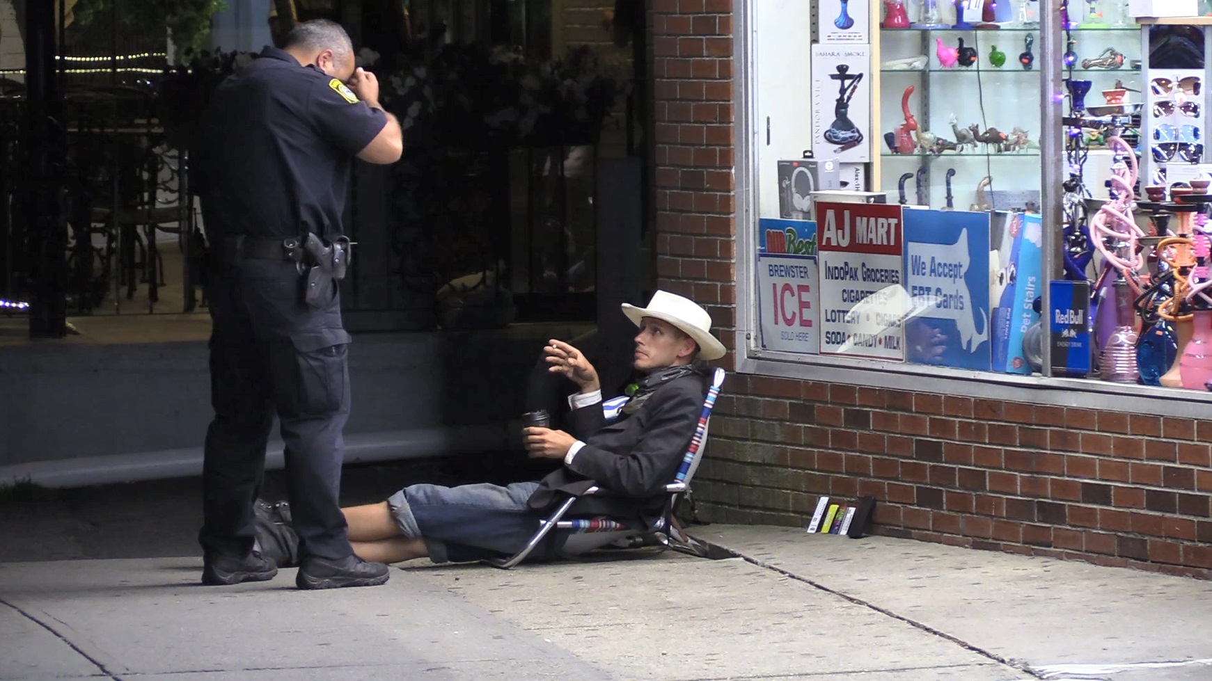 About an hour later, at about 12:30 a.m., police needed to go back to the sidewalk outside of the same nightclub after receiving another call about the same male; this time he had returned with a beach chair and a hammer…