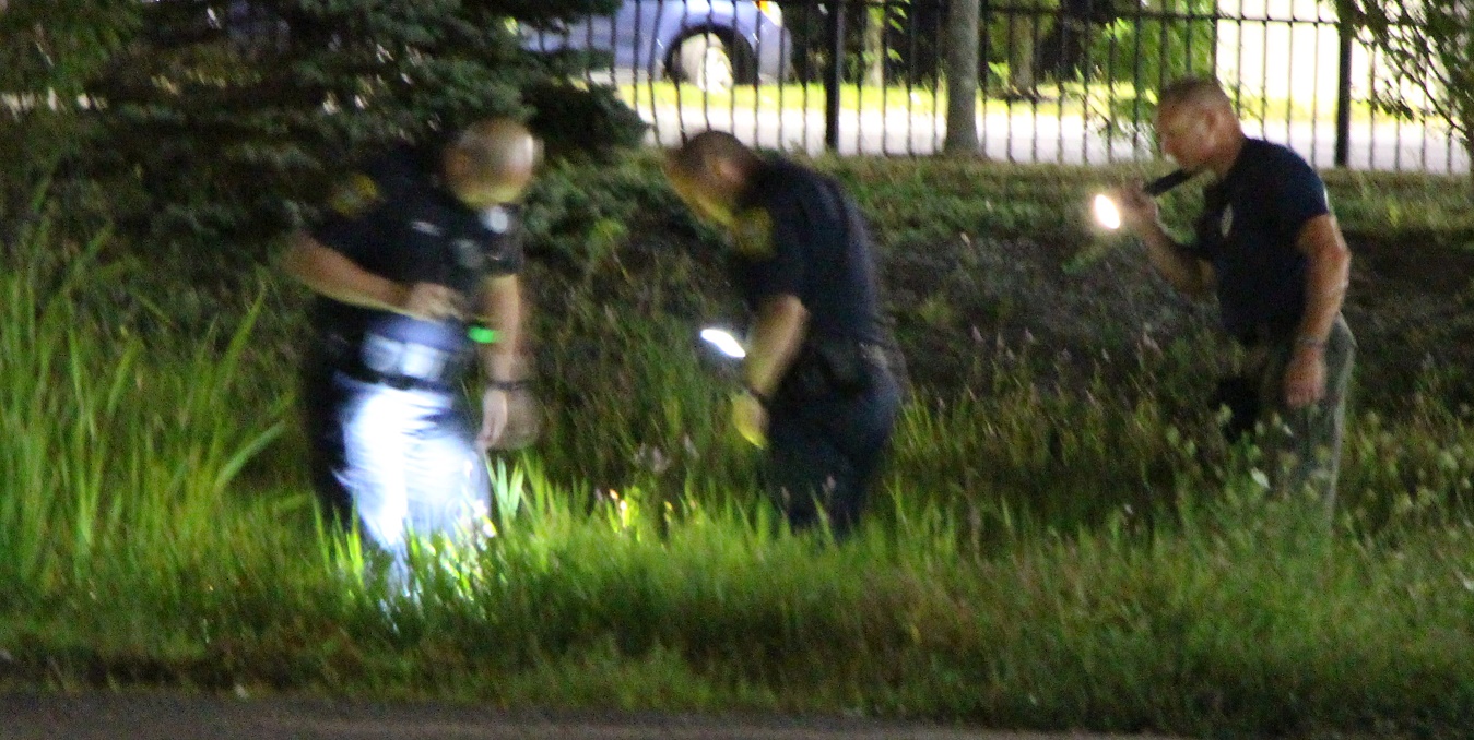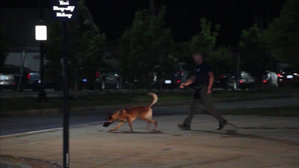 Patrolman Sean Roycroft had his K-9 partner Rocky sniff the area for the gun and other evidence.