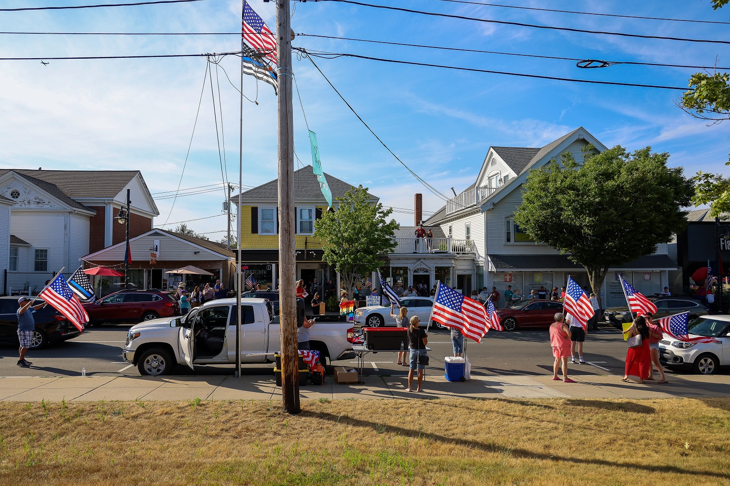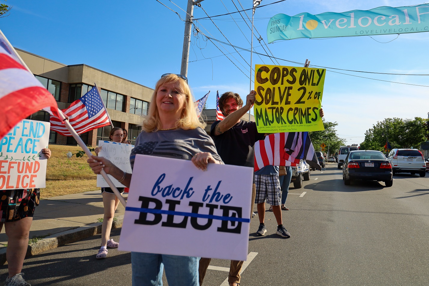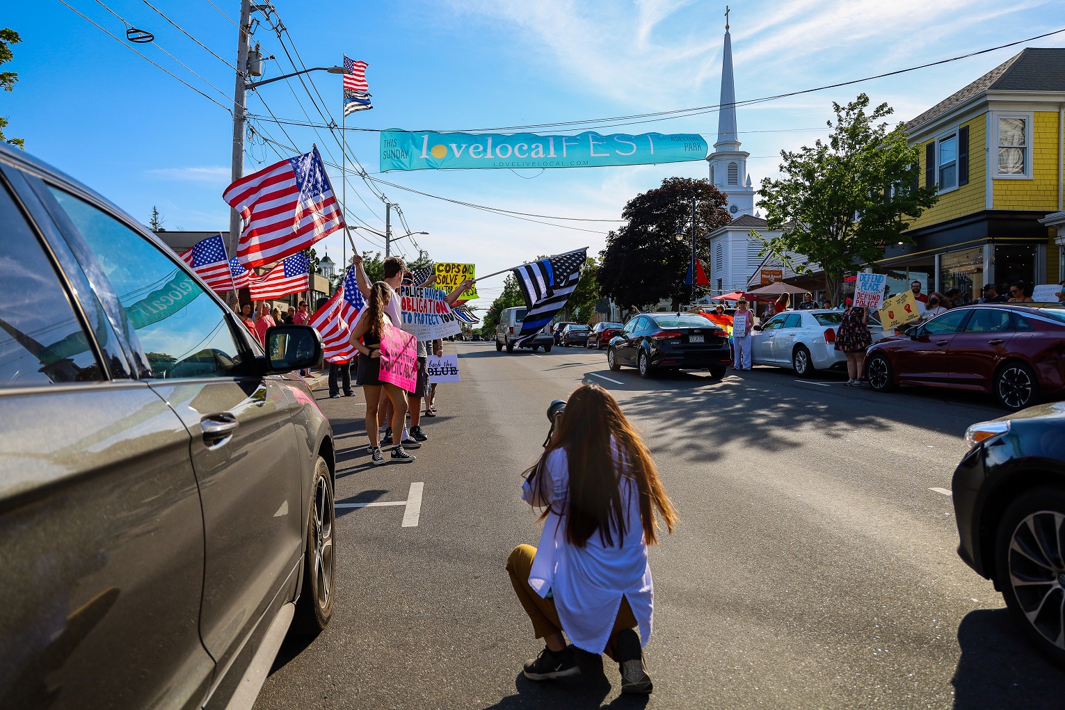 “BACK THE BLUE” ON ONE SIDE OF STREET, “DEFUND THE POLICE” ON OTHER, “LOVE LOCAL FEST” SOMEWHERE RIGHT DOWN THE MIDDLE! [HN PHOTOS]