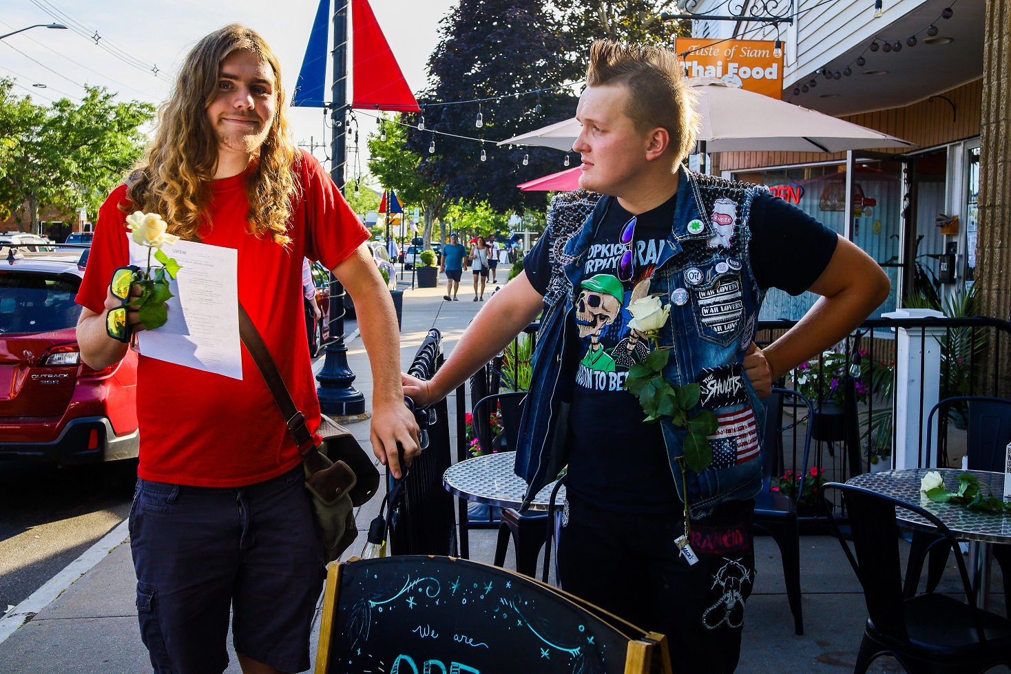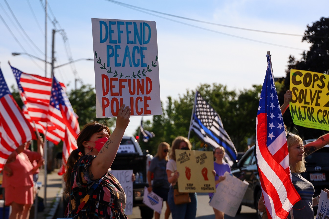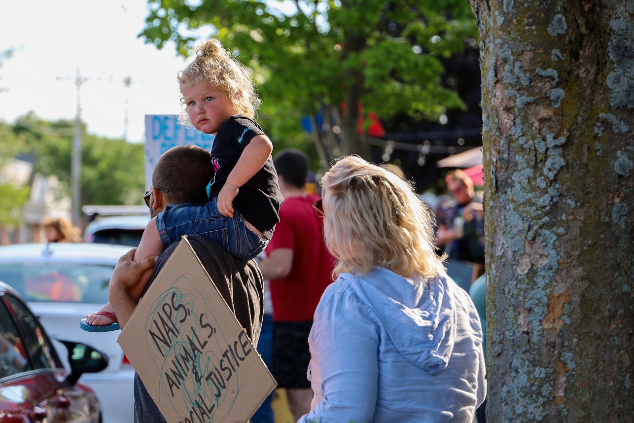 “BACK THE BLUE” ON ONE SIDE OF STREET, “DEFUND THE POLICE” ON OTHER, “LOVE LOCAL FEST” SOMEWHERE RIGHT DOWN THE MIDDLE! [HN PHOTOS]