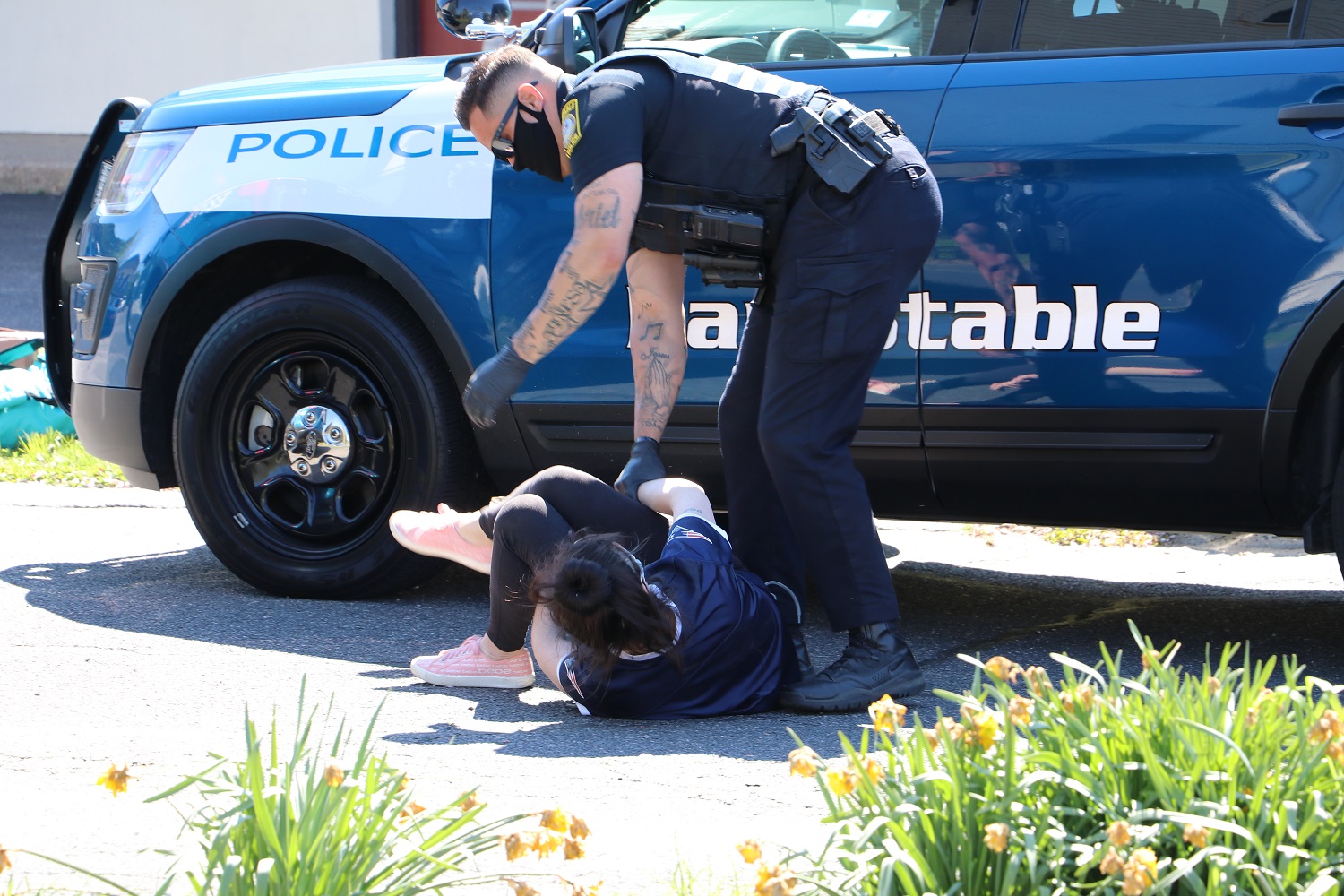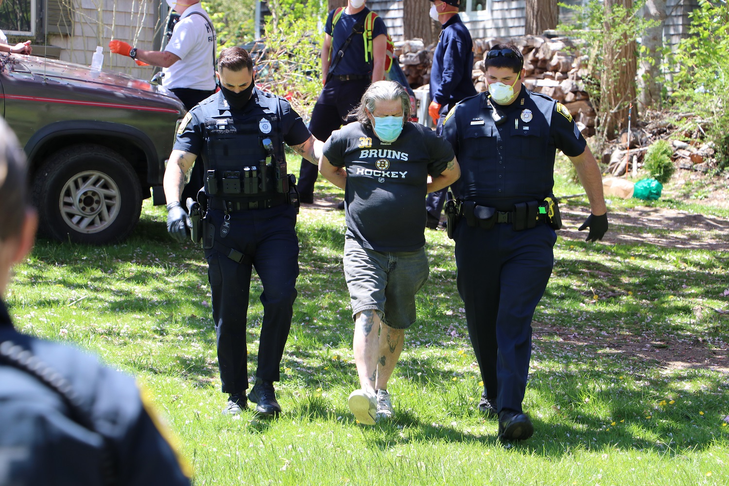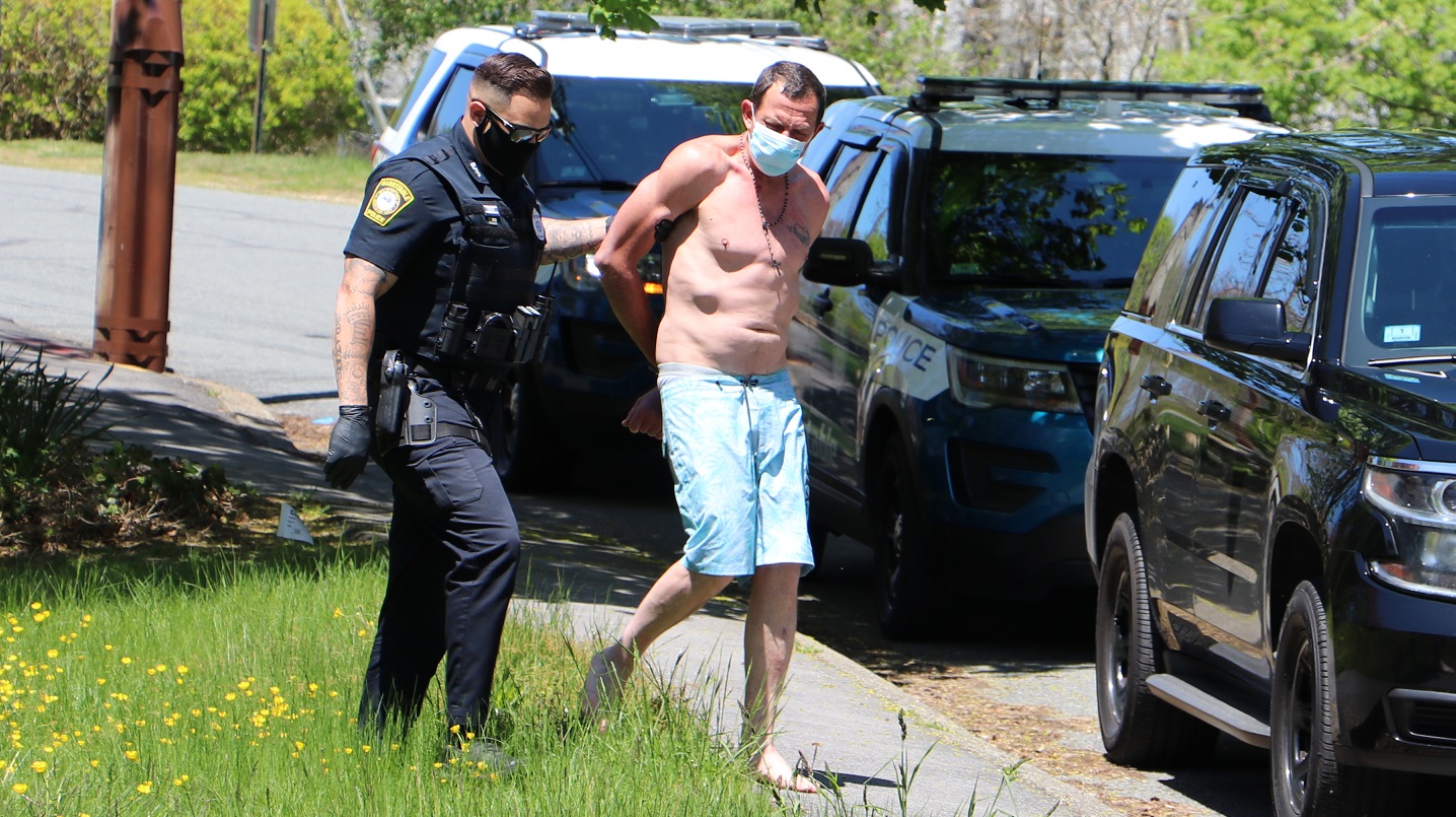 ABOVE HN PHOTO: Barnstable Police Officers had to deal with a woman who managed to get the handcuffs from behind her to in front…