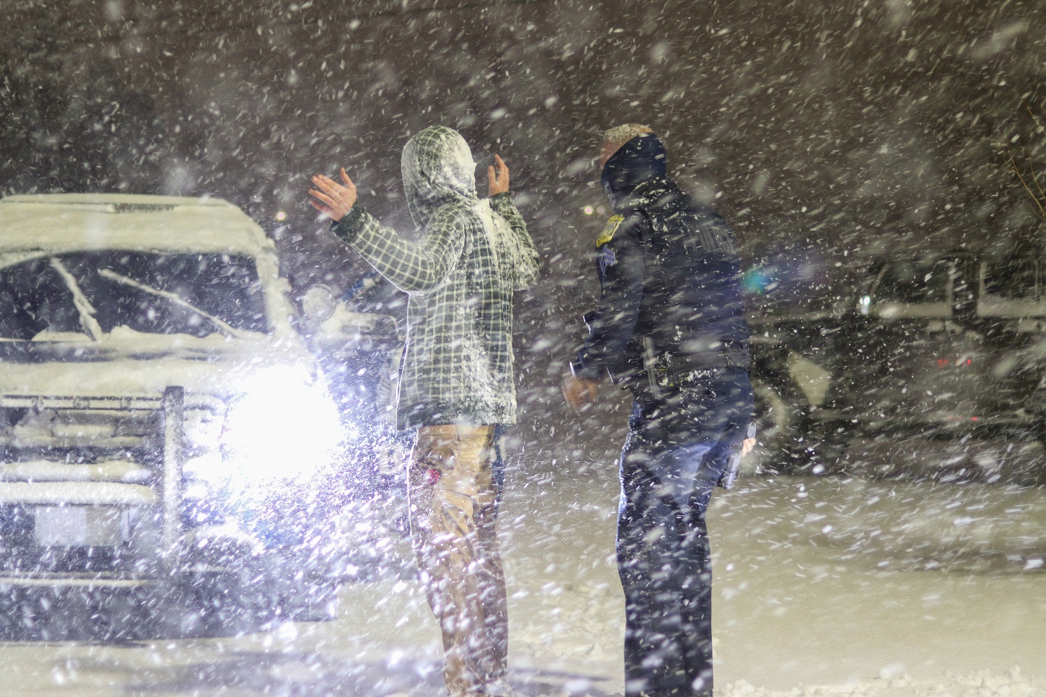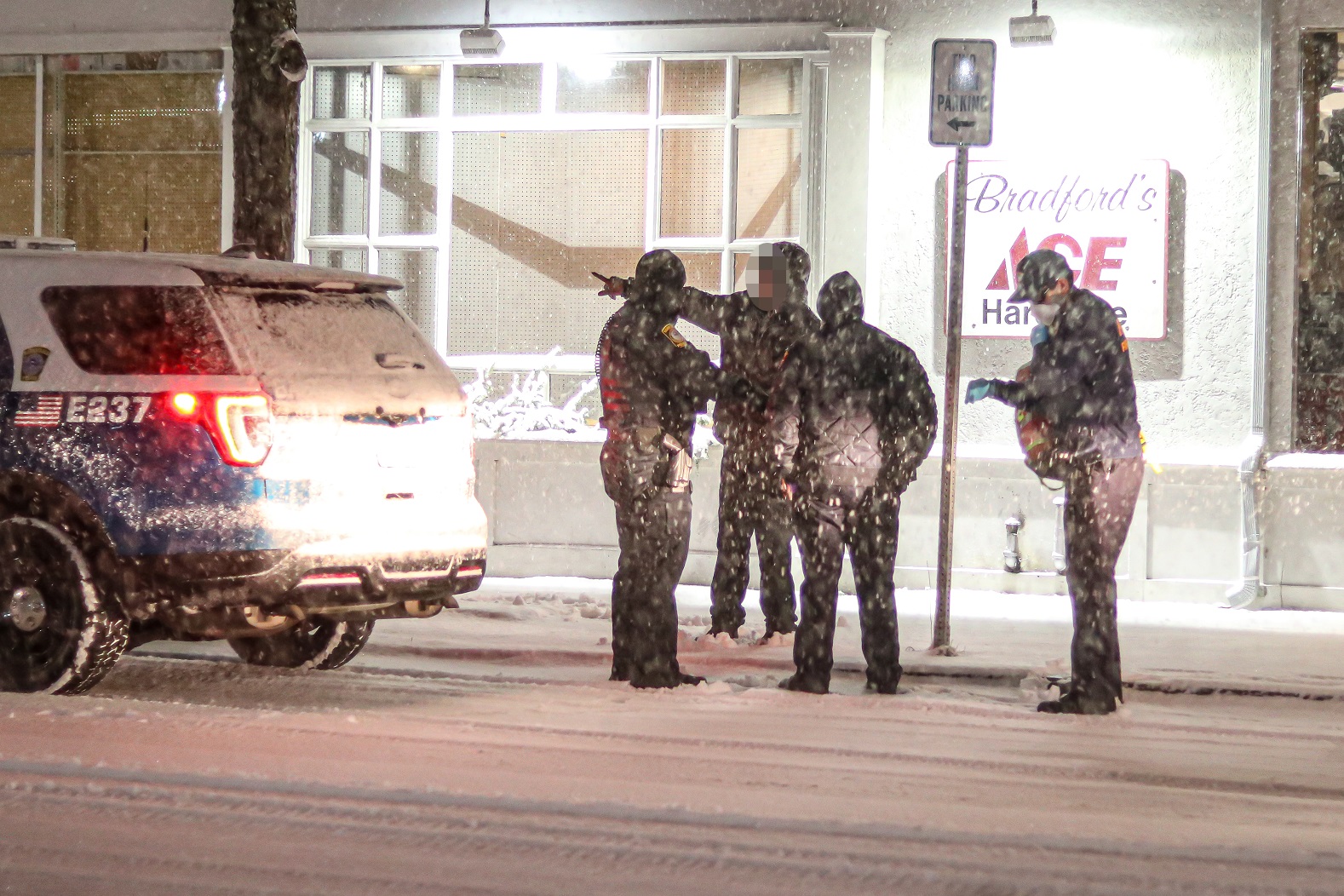 In the above HN Photo, a Barnstable Police Sergeant conducted a quick pat-frisk before officers gave this man a much appreciated courtesy ride back to their front lobby to get out of the storm and warmed up early this morning, shortly before 1:00a.m.. The man told HN he was not from this area and that his girlfriend who lives nearby had smashed his cellphone during an argument. He was out in the cold without adequate clothing… and he had no way to contact his family for a ride home, over 20 miles away…
