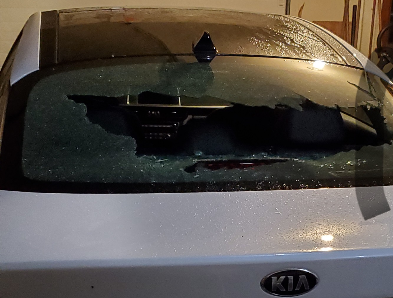 In the following HN Reader photo, a woman had parked her car outside of Trader Joe’s in Hyannis last evening, only to have some random male hurl a rock through her rear window. She gave police officers a description and they searched the area without any luck. HN was nearby when officers took the report… and a friend of the victim later sent in the following photo. It’s still uncertain what, if anything, may have triggered the rock thrower…