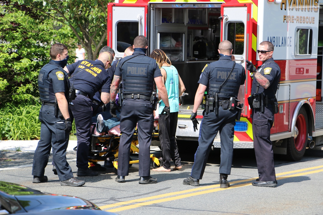 HYANNIS – As you will see and hear in the following HN Video, multiple Barnstable Police squad cars rushed to the area of Gosnold Street this afternoon for what was initially described as a car being “hijacked” with a female being choked by a male…
